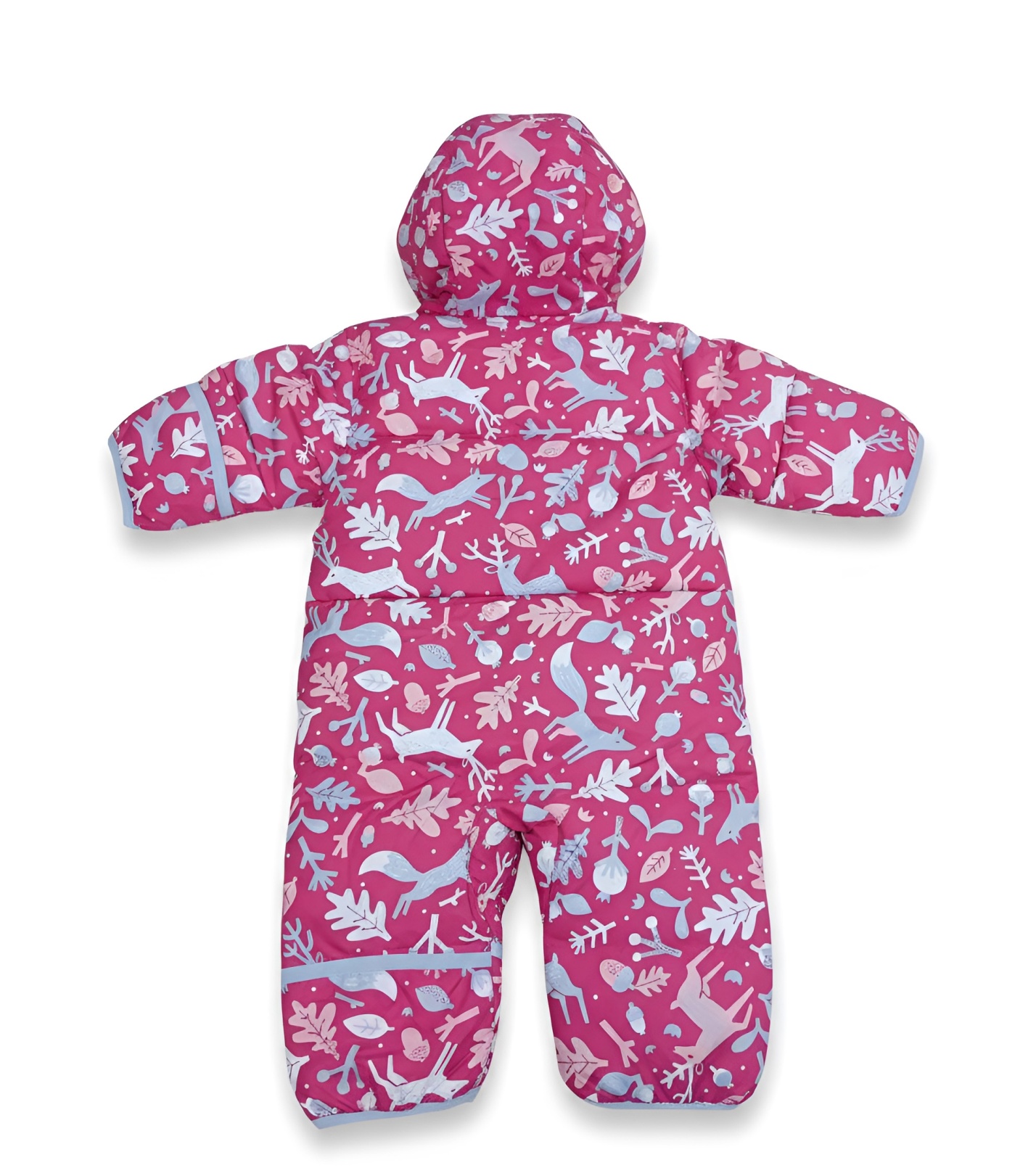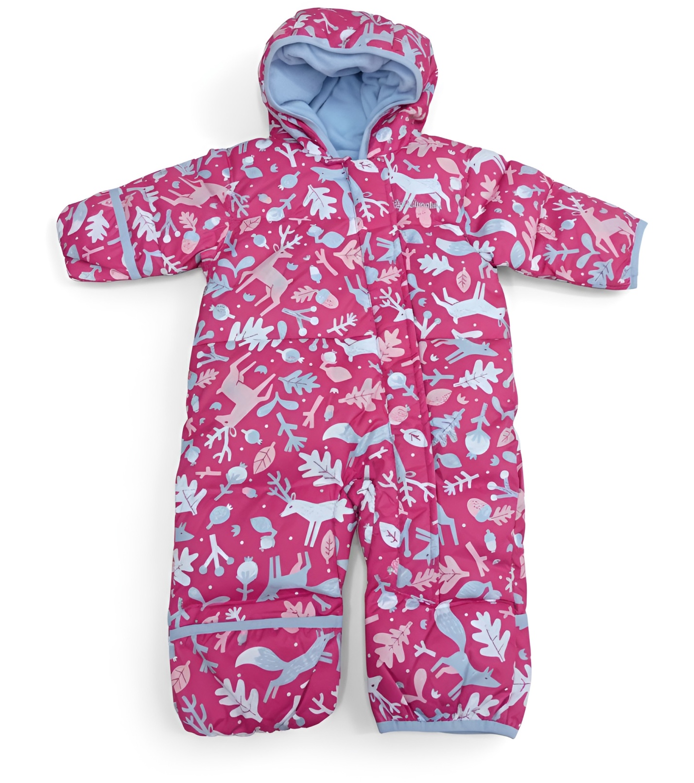 Povrchový materiál je vodoodpudivý (water resistant), takže spolehlivě chrání před sněhem i lehkým deštěm. Vnitřek je příjemně měkký a hřejivý, ideální pro zimní procházky, pobyt v kočárku či první venkovní dobrodružství. Zip je veden asymetricky po celé délce kombinézy, což výrazně usnadňuje oblékání i svlékání.