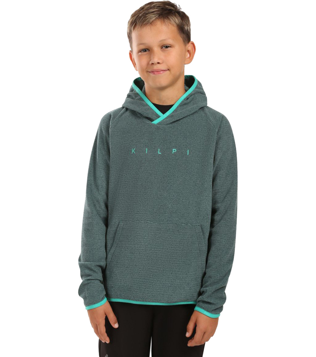 Multifunkční fleecová chlapecká mikina Kilpi FLOND-JB pro volný čas i sportovní zážitky. Vyrobena z lehkého, hřejivého materiálu OPTI-HEAT, který pomáhá udržovat vlastní tělesné teplo tak, že transportuje vlhkost z prvních vrstev na povrch materiálu a zabraňuje pronikání chladu zvenčí. Lehký žíhaný efekt je docílen kombinací dvou odstínů barev. Kapuce i okraje rukávů a spodního lemu jsou lemovány kontrastním materiálem. Na prsou je umístěna velká výšivka s logem. Děti jistě ocení praktickou klokaní kapsu. Mikina Kilpi FLOND-JB pro malé i velké dobrodruhy v nabídce ve dvou barvách.