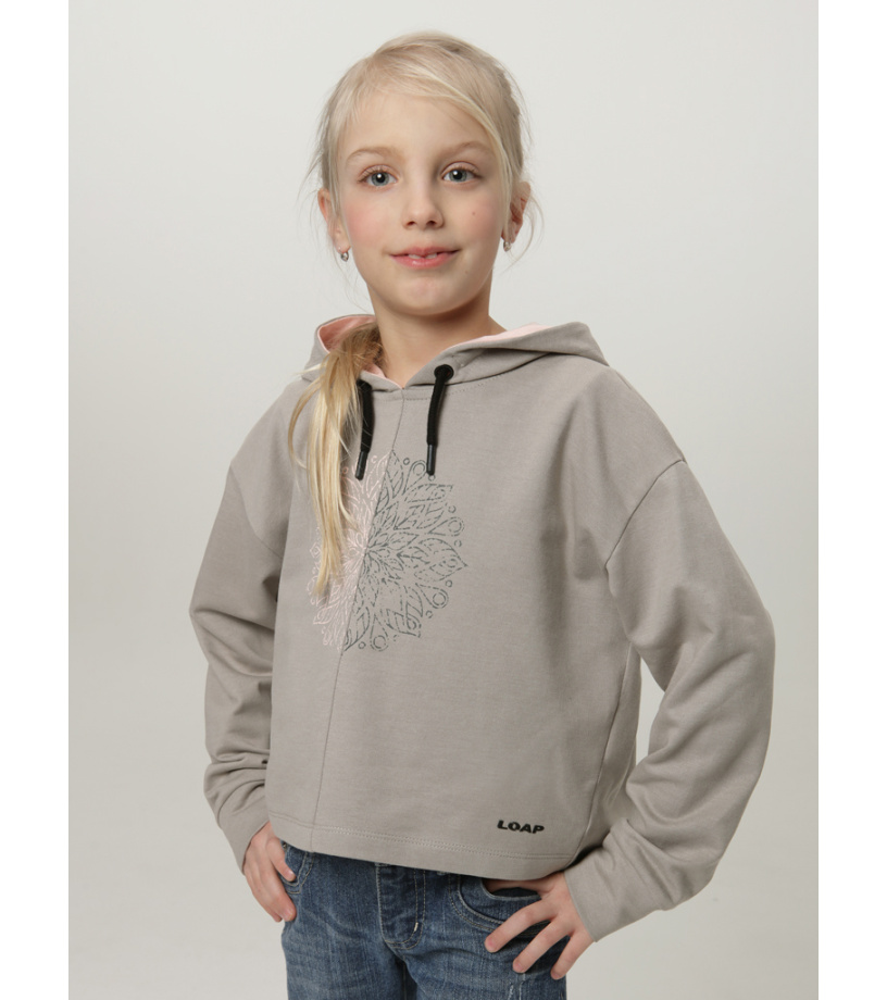 Dívčí mikina LOAP DOKSY je ideální volbou pro každodenní nošení do školy i na volný čas. Komfortní střih spolu se spadlými rameny a volným spodním okrajem zajišťuje maximální volnost pohybu, což ocení každá mladá slečna při hrách i odpočinku. Pevná kapuce chrání před nepříznivým počasím a decentní potisk na hrudi dodává mikině moderní vzhled. Materiál je příjemný na dotek a vhodný pro celodenní nošení. Mikina LOAP DOKSY se snadno kombinuje s kalhotami, legínami i sukní, a proto se stane oblíbenou součástí dívčího šatníku.