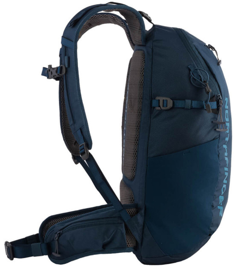 Vylepšená verze našeho oblíbeného loňského modelu Annapurna 20 l je tady. Lehký outdoorový turistický batoh o objemu 20 litrů z lehkého 200D ripstop 100% polyamidu je vhodný pro denní turistiku od vysokohorských túr až po volnočasové procházky. Jednoduchý minimalistický design plný funkčních vychytávek, se kterými se neztratíte na žádné túře ani cestách. Batoh je tvořen hlavní komorou na zip, která disponuje vnitřní kapsou na zip. Vnější kapsa na zip s klipem na klíče uschová drobnosti, mobil či peněženku. Vnější kapsa na zip na předním panelu je ideální například pro uložení mapy. Batoh pojme také hydrovak, a to díky poutku na upevnění a vývodu ven. Zádový systém je pohodlný a zároveň podporuje cirkulaci vzduchu během nošení. Odlehčený bederní pás disponuje kapsami na zip na drobnosti po obou stranách. Hrudní popruh je nastavitelný a naleznete na něm také píšťalku. Na ramenním popruhu naleznete poutko na uchycení slunečních brýlí. Trekkingové hole nebo cepín uchytíte po obou stranách batohu. V batohu najdete také integrovanou a odnímatelnou pláštěnku. Elastické kapsy po bocích unesou také termosku či láhev. Na předním panelu je umístěn popruh s poutky: s použitím gumičky nebo rep šňůrky si umíte vytvořit dodatečný úložný prostor. Batoh disponuje také bočními kompresními popruhy.