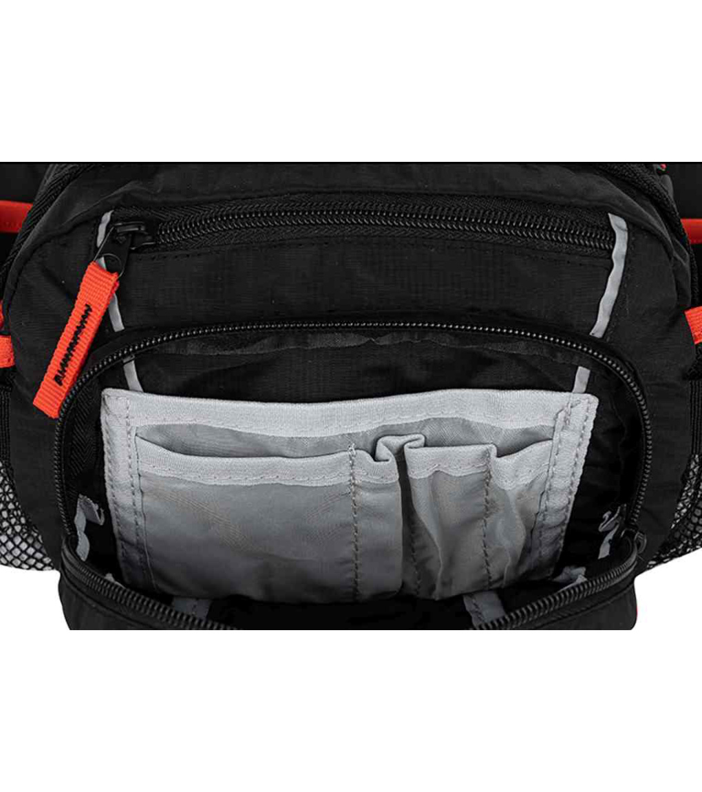 Turistická ledvinka s organizérem v přední kapse na zip a mnoha doplňky. Vhodná pro běžné nošení po městě i outdoorové výpravy. Vzadu je polstrovaná, má bedernípás a reflexní prvky. Milovníci hudby jistě ocení vývod na sluchátka.