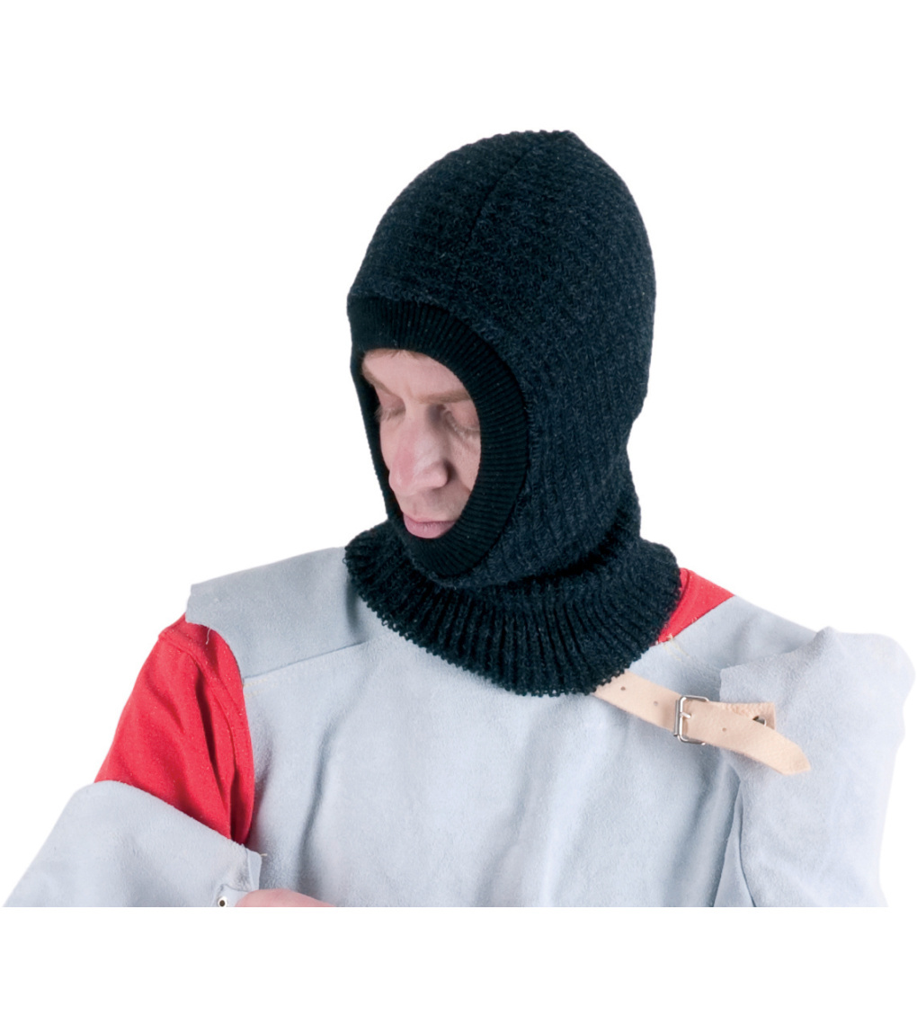Pružná pletená kukla s otvorem na tvář.