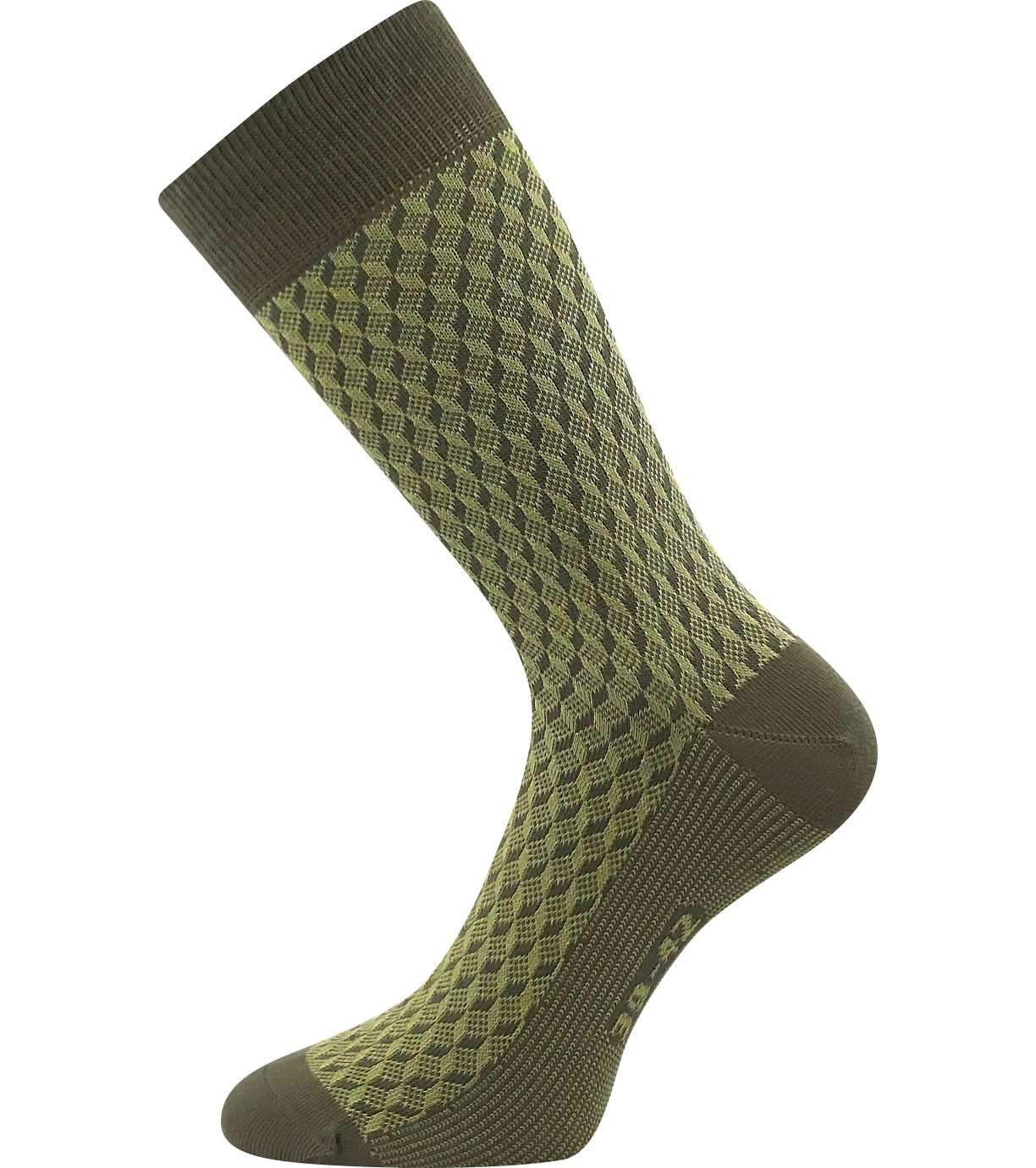 Pánské žakárové ponožky ŽERYK z kolekce Lonka® jsou díky přírodní bavlně příjemné na nošení a s přidaným elastanem výborně pruží, drží na svém místě a snadno se oblékají. Slabé ponožky mají příjemný, jemný lem, který neškrtí. Barevné ponožky můžete nosit do obleků nebo k džínám, zajímavý detail povznese tyto společenské ponožky na vyšší úroveň.