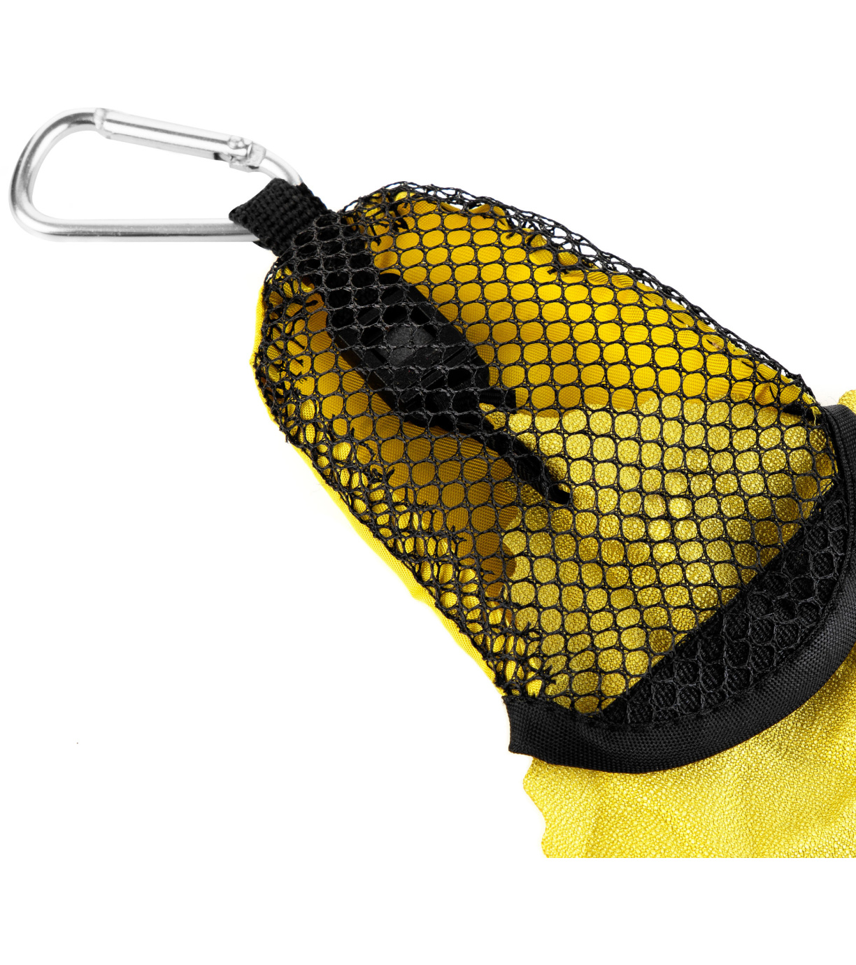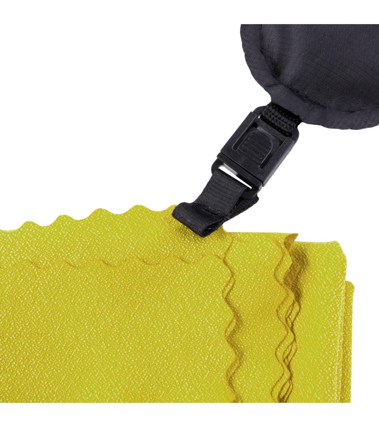 Cestovní a turistický ručník malého rozměru ze savého, měkkého a velmi příjemného materiálu, je ideální volbou pro zapálené sportovce, cestovatele a turisty. Díky speciálnímu polyesterovému a polyamidovému vláknu, zabere o cca 80% méně místa než běžný froté ručník. Ručník je vybavený karabinou pro připevnění například k batohu.