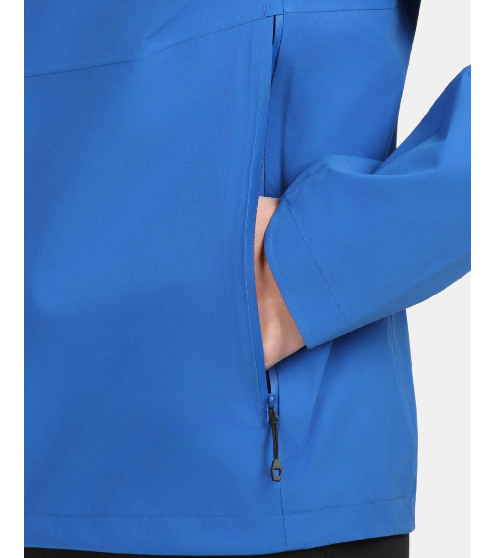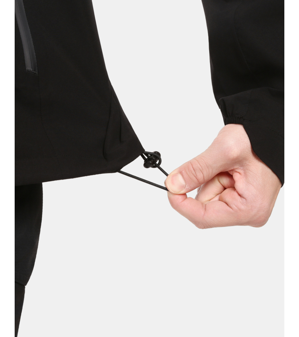 Bunda nabízí praktické detaily pro pohodlí a bezpečnost – pevná kapuce s vyztuženým kšiltem, vysoký límec a dvoucestný hlavní zip, který se dá rozepnout i zespodu, zajišťují komfort při každém pohybu. Dvě voděodolné kapsy s kroužkem na klíče poskytují bezpečné úložiště a zároveň fungují jako ventilace. Nastavitelný spodní lem šňůrkou a reflexní detaily doplňují funkčnost a zvyšují viditelnost za snížené světelné podmínky.