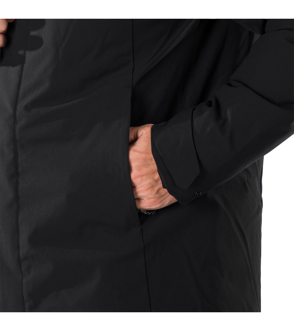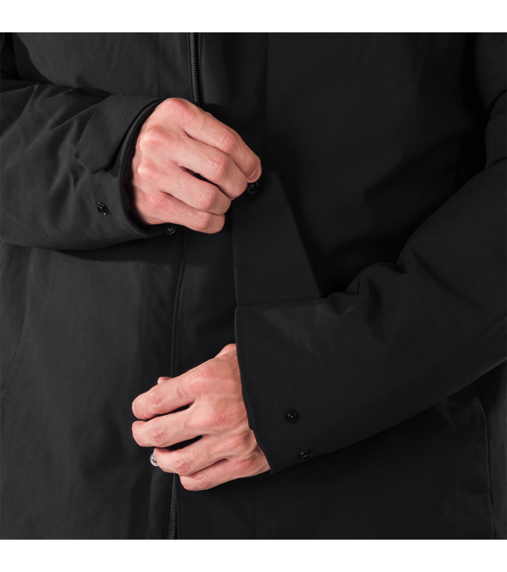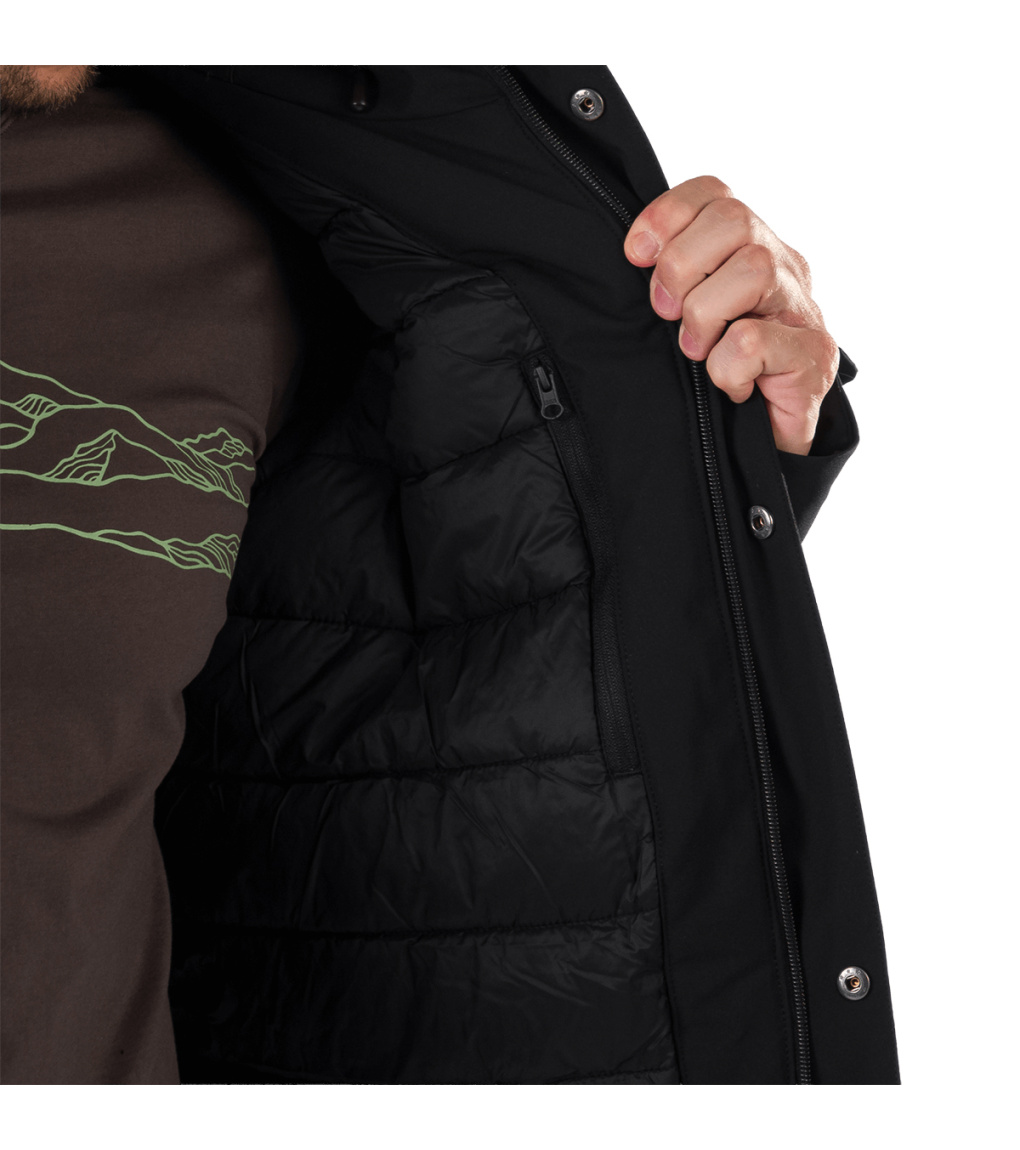 Pánský městský kabát JAKUB je zateplená parka, ideální do větrného a chladného počasí s možnými srážkami. Vrchní materiál je voděodolný, větruodolný a příjemně hřejivý díky mikrovláknové izolaci. Kabát má podlepené kritické švy pro vyšší odolnost vůči vlhkosti a disponuje dvěma předními kapsami na zip a hrudní kapsou. Rukávy jsou předtvarované a jejich obvod lze nastavit pomocí suchého zipu. Fixní 3D kapuce poskytne ochranu i během deště. Povrchová úprava WR bez PFC zvyšuje ekologickou hodnotu výrobku.