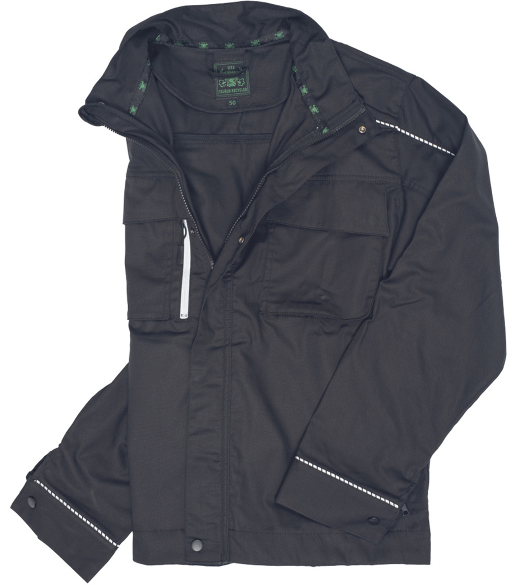 Popis: • moderní pánská pracovní bunda se zapínáním na zip krytým légou na druky • 2 náprsní kapsy s klopou • 1 Napoleon kapsa vpravo • 2 boční kapsy na zip • nastavitelný obvod manžet rukávů pomocí druků • reflexní paspulky pro lepší viditelnost