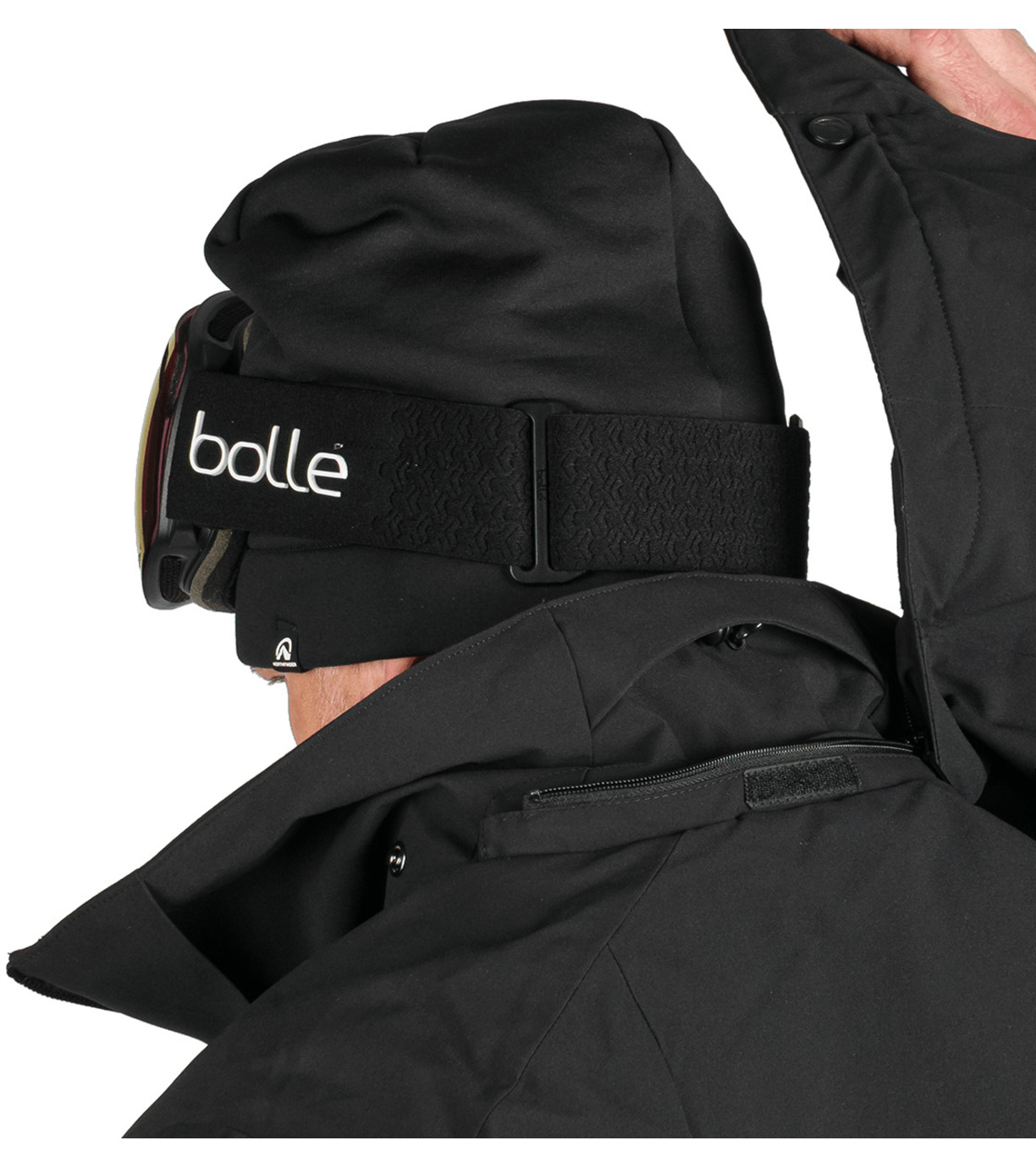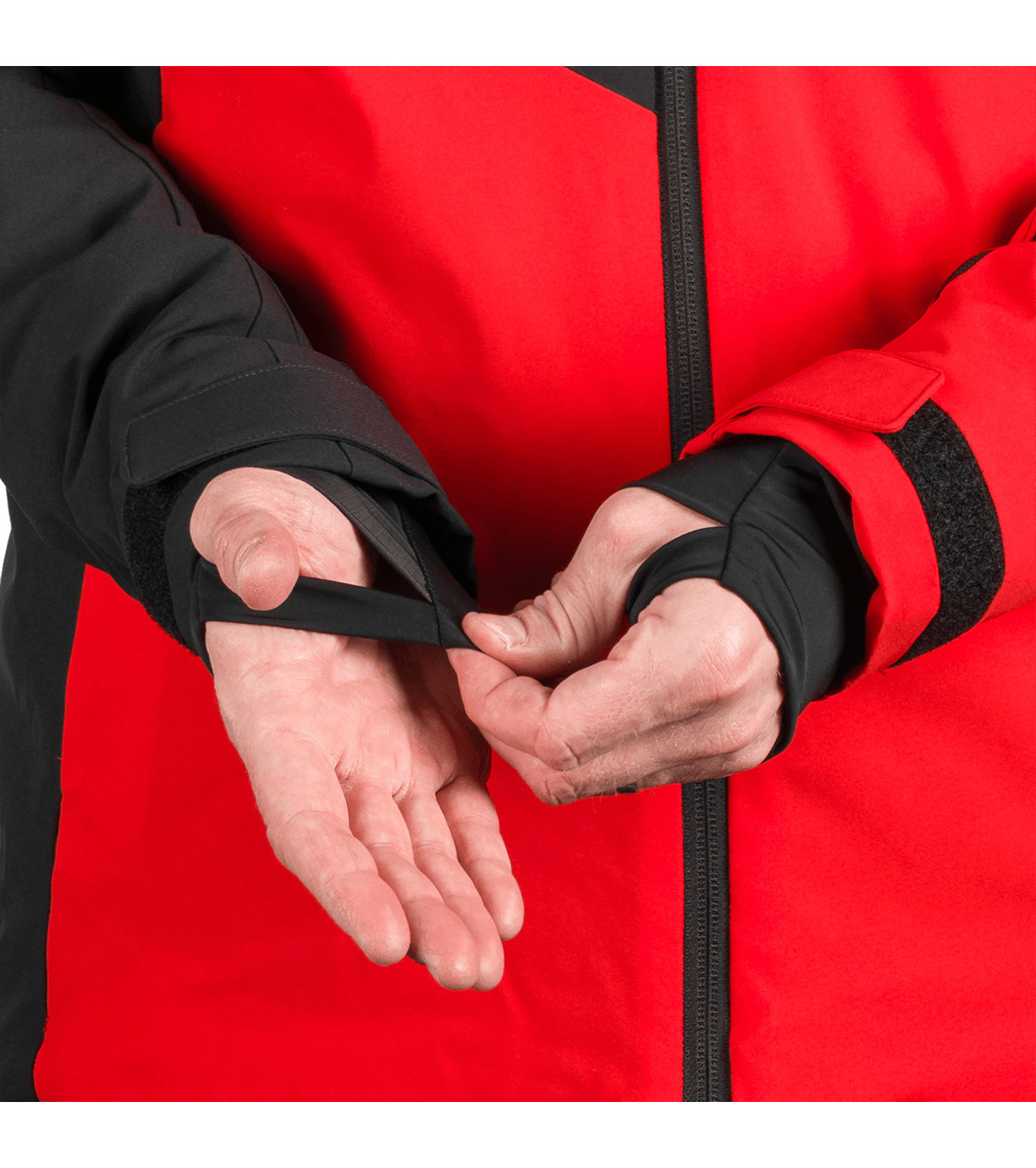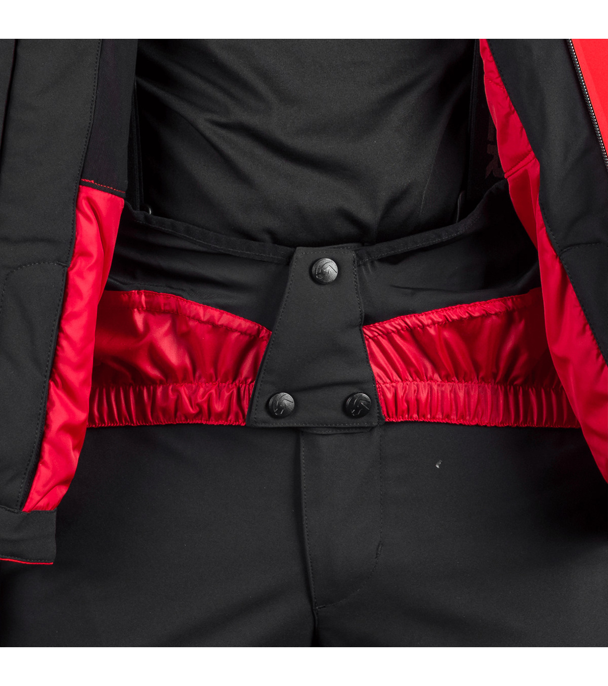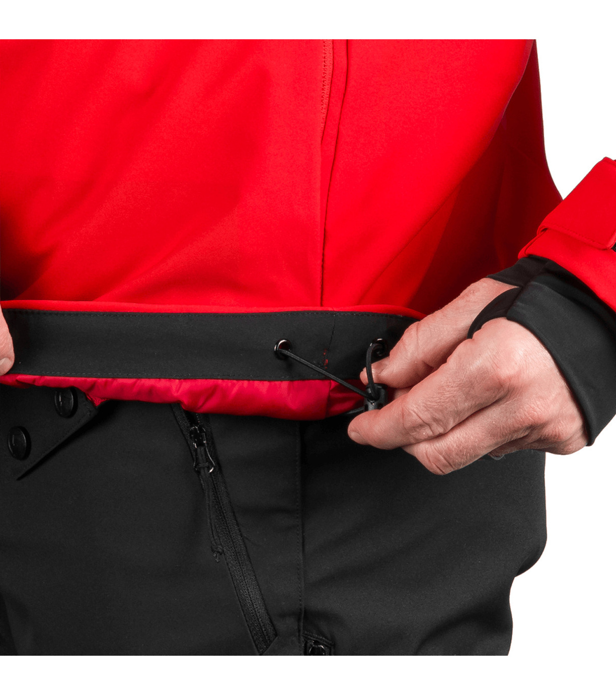 Všitá ochraná sněhová manžeta, která zabraňuje pronikání sněhu pod oděv. Ve spodní části je našita elastická protismyková guma.