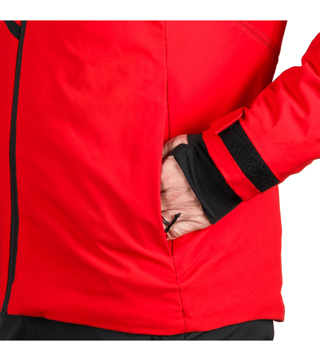 Tato zateplená lyžařská bunda vás nikdy nenechá v nouzi. Je určena do zimy, chladu, sněžení a větru. Dvojvrstvý materiál je vodoodpudivý a větru odolný s parametry vodního sloupce a prodyšnosti 10 000 mm H₂O / 10 000 g/m²/24 h. Kritické švy na bundě jsou podlepené pro ještě větší ochranu před vlhkostí. Materiál je navíc opatřený ekologickou vodoodpudivou úpravou bez použití PFC látek. Bunda je zateplená syntetickou izolací imitující vlastnosti peří. Disponuje vším, co budete při lyžování potřebovat: sněhovým pásem, dvěma bočními kapsami na zip, vnitřní kapsou na brýle, vnitřní náprsní kapsou, vnějšími náprsními kapsami, kapsou na rukávu na skipas a držákem na sluchátka. Sněhový pás a zipy podšité látkou proti profouknutí dodatečně chrání proti chladu a zvyšují tím váš tepelný komfort. Přebytečné teplo v případě potřeby odvětráte zipovými větracími otvory v podpaží. Odnímatelná 3D kapuce je plně nastavitelná. Bunda má také nastavitelný obvod dolního okraje. Zipy známého výrobce YKK® jsou zárukou dlouhé a bezproblémové funkčnosti výrobku.