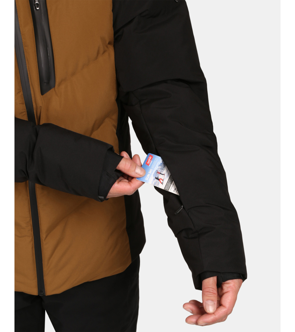 Všitá ochraná sněhová manžeta, která zabraňuje pronikání sněhu pod oděv. Ve spodní části je našita elastická protismyková guma.