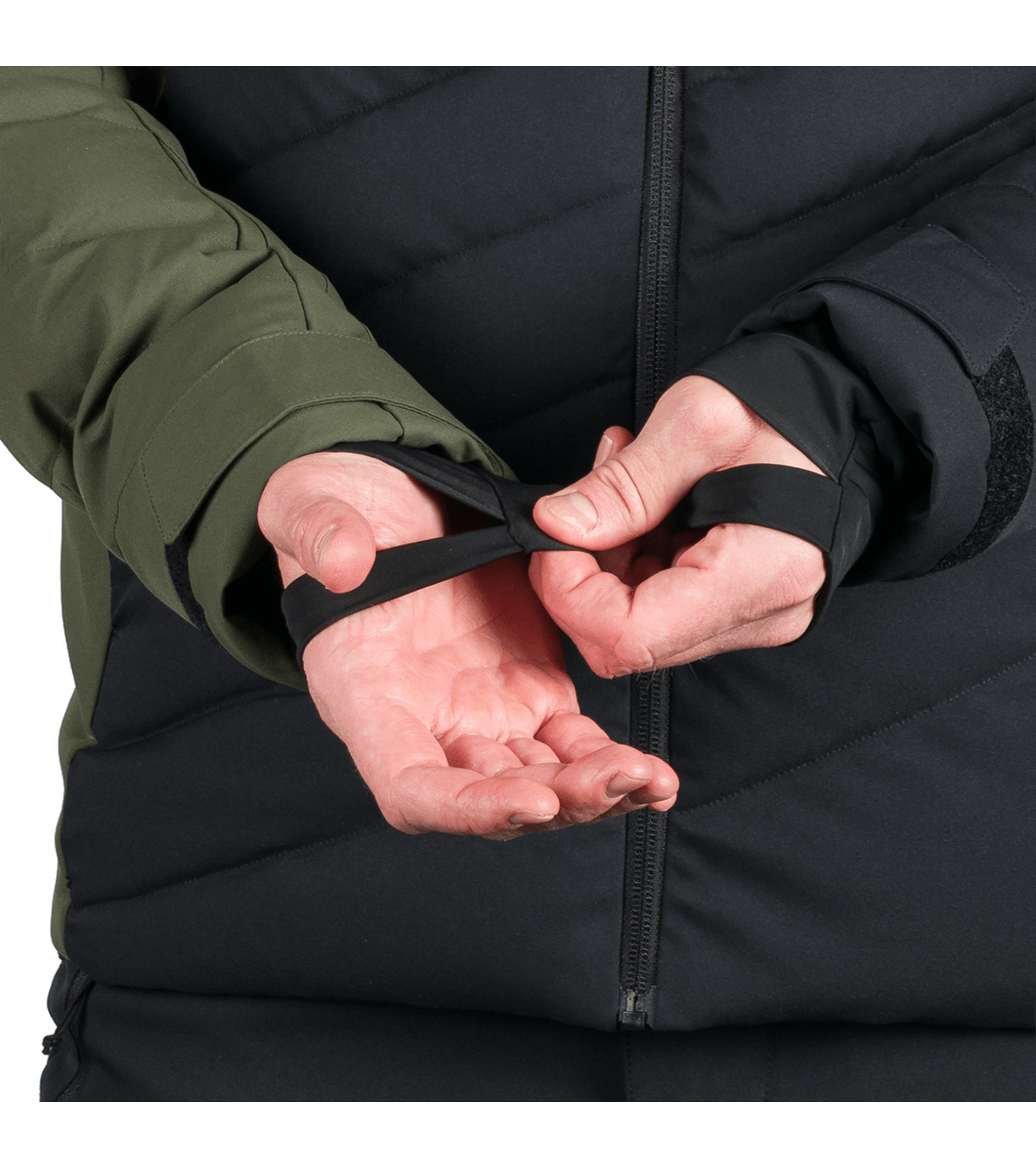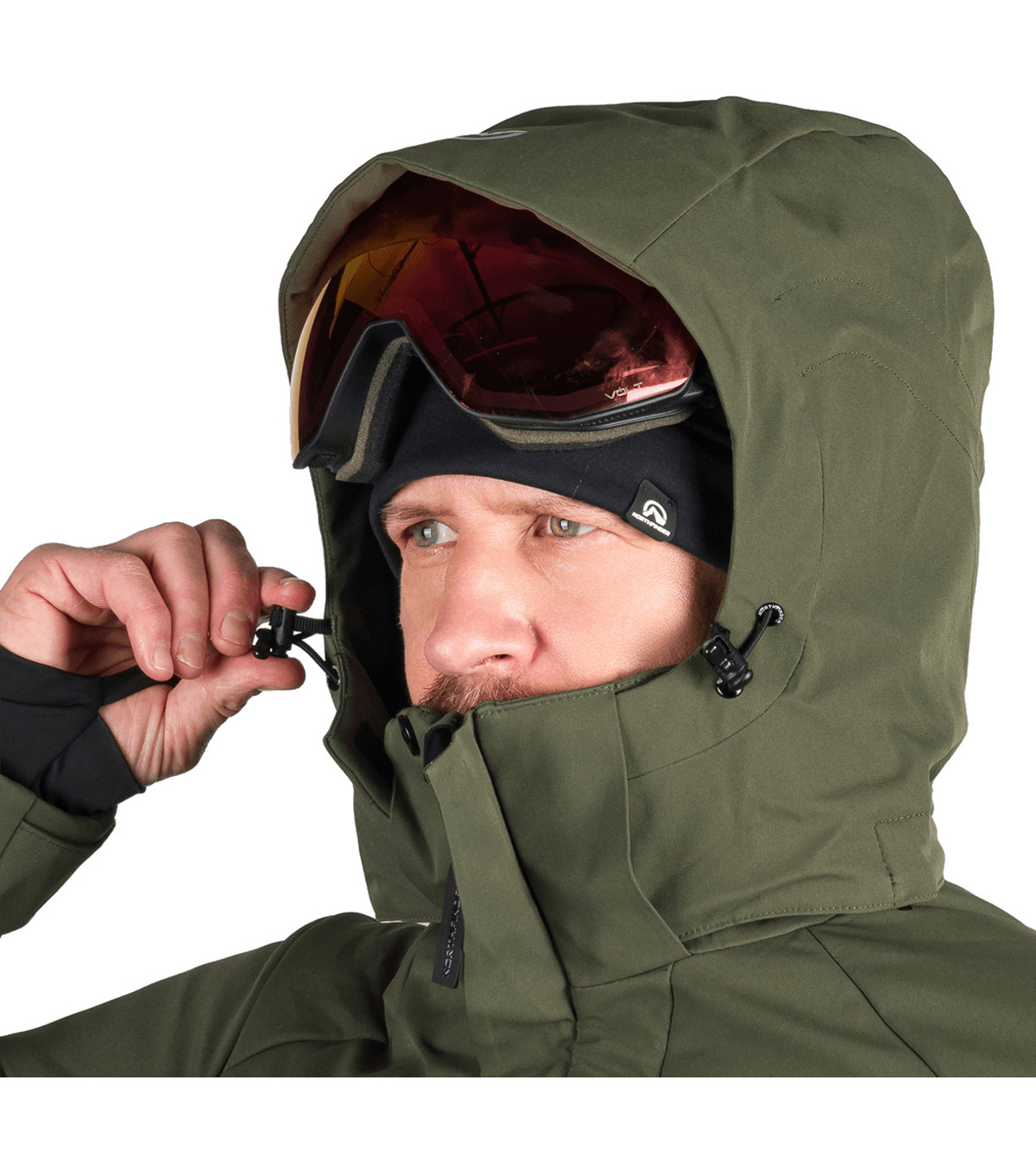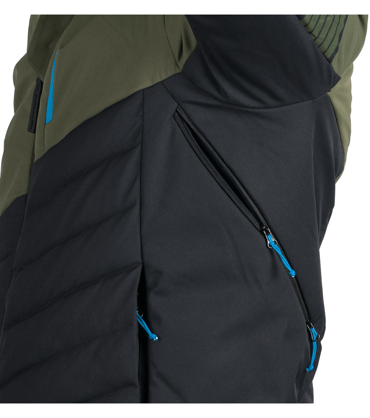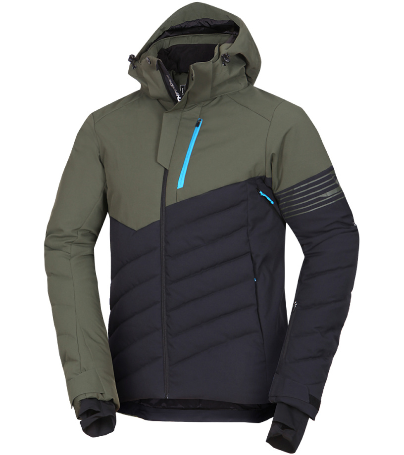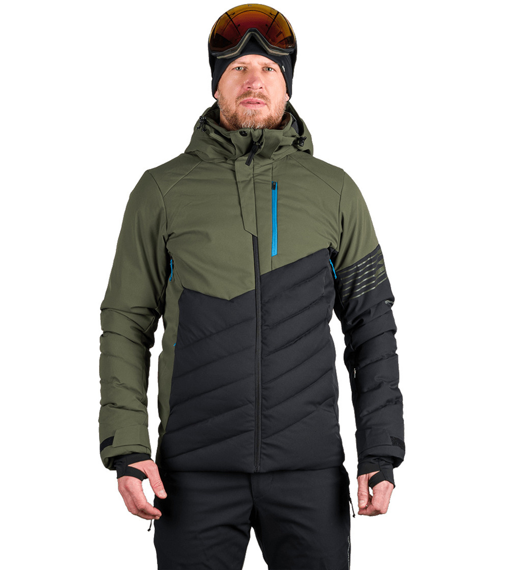 Tato zateplená lyžařská bunda vás nikdy nenechá v nouzi, ať už se vrhnete do sjezdovky nebo se vydáte na túru na běžkách. Je určena do zimy, chladu, sněžení a větru. Dvojvrstvový materiál je vodoodpudivý a větruodolný s parametry vodního sloupce a prodyšnosti 10 000 mm H₂O / 10 000 g/m²/24 h. Materiál je navíc opatřený ekologickou vodoodpudivou úpravou bez použití PFC látek. Bunda disponuje vším, co budete při lyžování potřebovat: sněhovým pásem, dvěma bočními kapsami na zip, vnitřní kapsou na brýle, vnitřní náprsní kapsou, vnějšími náprsními kapsami, kapsou na rukávu na skipas. Sněhový pás a zipy podšité látkou proti profouknutí dodatečně chrání proti chladu a zvyšují tím váš tepelný komfort. Odnímatelná 3D kapuce je plně nastavitelná. Bunda má také nastavitelný obvod dolního okraje. Zipy od známého výrobce YKK® jsou zárukou dlouhé a bezproblémové funkčnosti výrobku.