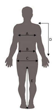 Poměřte se v uvedených místech a porovnejte s tabulkou. Uvedené rozměry jsou v cm.