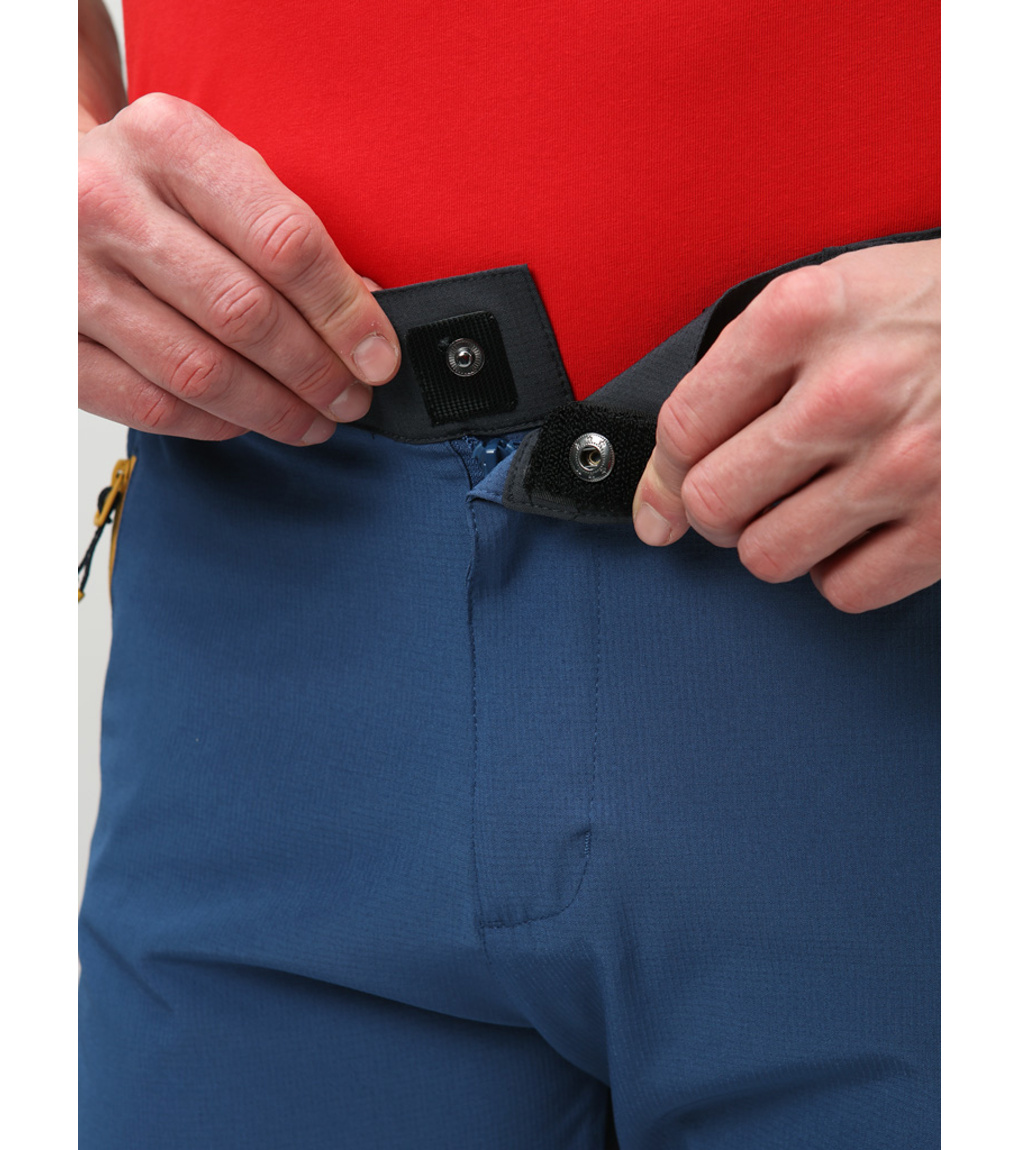 Pánské kalhoty Loap UZBEN ocení každý, kdo rád tráví čas v přírodě. Funkční materiály a praktické detaily z nich dělají perfektního parťáka pro výlety i aktivní odpočinek. Odolný materiál s příměsí elastanu je zárukou pohodlí a snadno se udržuje. Klasický střih s částečně elastickým pasem a k tomu možností stažení v pase i u nohavic skvěle padne a poskytuje potřebnou volnost pohybu. Kalhoty disponují třemi praktickými kapsami a reflexními prvky pro zvýšení bezpečnosti pohybu za šera nebo tmy.
