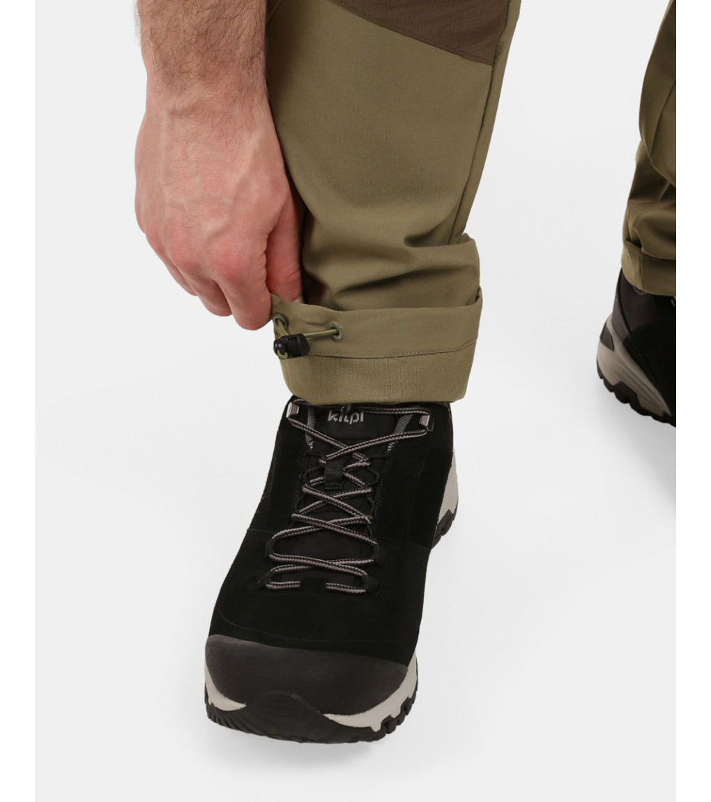 Kalhoty mají široký elastický pas se stahovací šňůrkou pro dokonalé padnutí, nastavitelné lemy nohavic a tři praktické kapsy – dvě hlavní a jednu zadní. Voděodpudivý materiál bez obsahu PFC je šetrný k přírodě a zároveň odolný vůči běžnému opotřebení. Díky těmto vlastnostem jsou Kilpi ARANDI-M spolehlivým parťákem pro vysokohorské túry, procházky přírodou i volnočasové nošení ve městě.