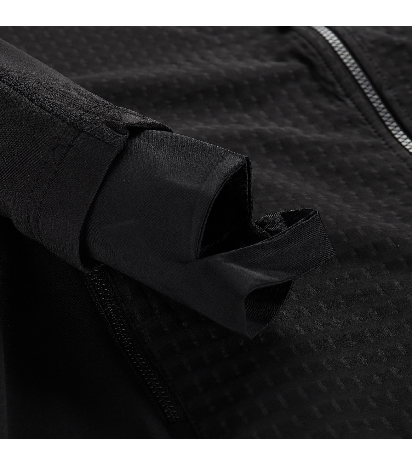 Kontrastní embosovaný materiál dodává mikině moderní vzhled, zatímco přiléhavý střih a ploché švy zajišťují pohodlné nošení bez nepříjemného odírání. Praktické detaily, jako je krytka u brady či rukávy s vnitřní elastickou manžetou s otvorem na palec, zvyšují funkčnost a komfort při nošení. Mikina nabízí dvě přední kapsy na zip, které spolehlivě uschovají drobnosti, a je doplněna delšími taháčky pro snadnou manipulaci.