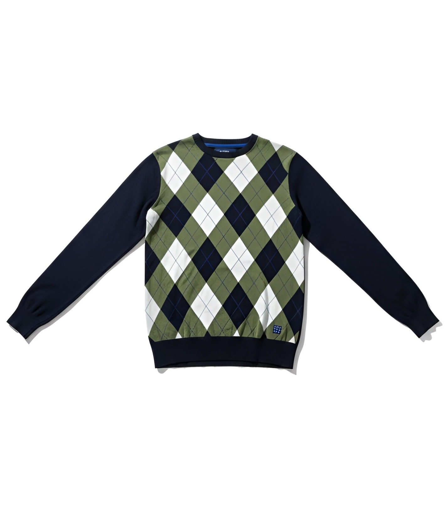 Pánský svetr s výrazným kosočtvercovým (argyle) se stylovým kouskem pro každodenní nošení. Kontrastní tmavé rukávy a lemy dodávají mikiny moderní a čistý vzhled.