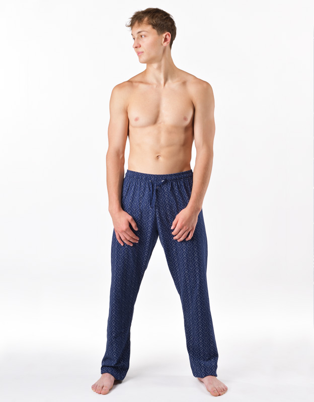 Pánské dlouhé volné kalhoty jsou tu pro Váš klidný spánek i domácí pohodlí. Zdobí je jemný potisk.