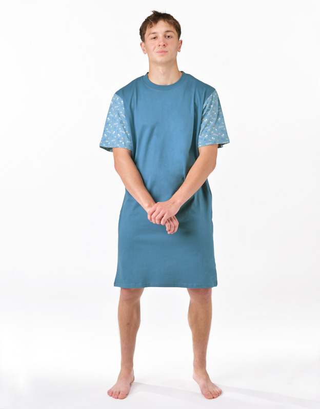Pánská noční košile s krátkými rukávy z jemného úpletu Vám poskytne jedinečné pohodlí během spánku. Rukávy jsou potištěné drobnějším vzorem.