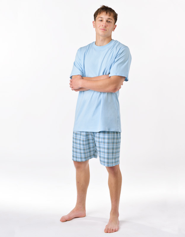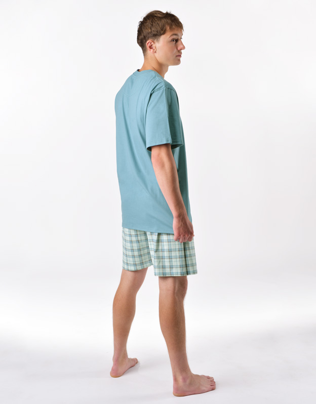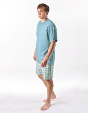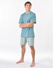 Pánské pyžamo volného střihu z jemného úpletu Vám poskytne pohodlí během spánku. Krátké kalhoty s oblíbeným vzorem káro doplňuje triko s krátkými rukávy.
