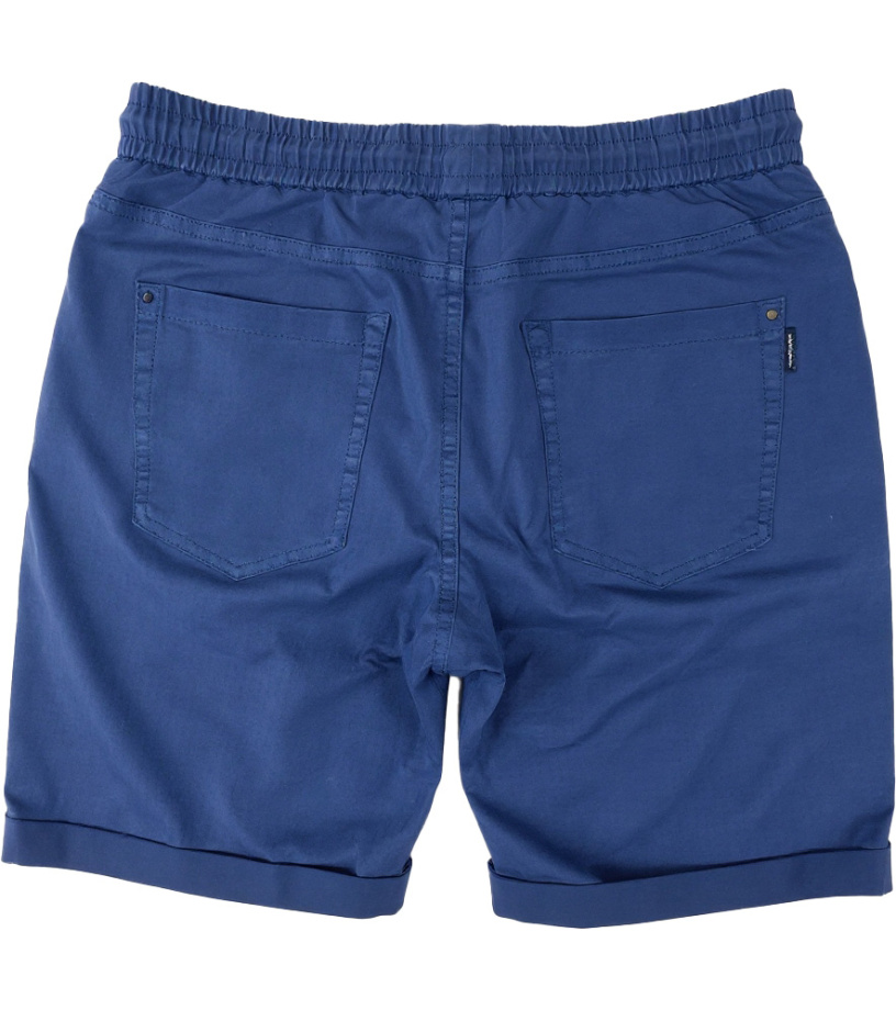 Pohodlné pánské kraťasy v tmavě modré barvě, ideální pro volný čas i každodenní nošení. Elastický pas se stahovací šňůrkou zajišťuje perfektní přizpůsobení a maximální komfort. Klasické boční kapsy poskytují prostor pro drobnosti, zatímco jednoduchý design bez výrazných prvků umožňuje snadné kombinování s tričkem nebo mikinou. Příjemný materiál je vhodný na teplejší dny a nabízí pohodlí při pohybu i odpočinku.