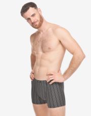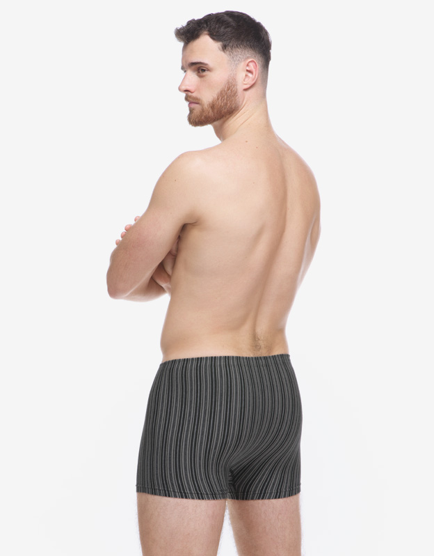 Pánské boxerky s kratší nohavičkou mají hladký zadní díl bez středového švu. Jsou z přírodního úpletu - modalové vlákno s bavlnou, doplněném o elastanová vlákna. Tento materiál je pružný a pohodlný pro každodenní nošení.