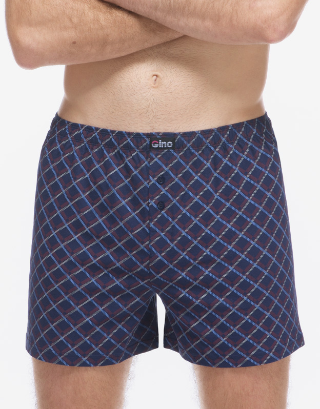 Volné trenky potěší každého, kdo má rád klasický pohodlný střih a přírodní materiály. Dobře padnoucí pasová guma a rozparek na dva knoflíky jsou samozřejmostí. Tento kousek je potištěn výrazným vzorem káro. V pase je nášivka s logem Gino. Trenky jsou vhodné pro každodenní nošení.