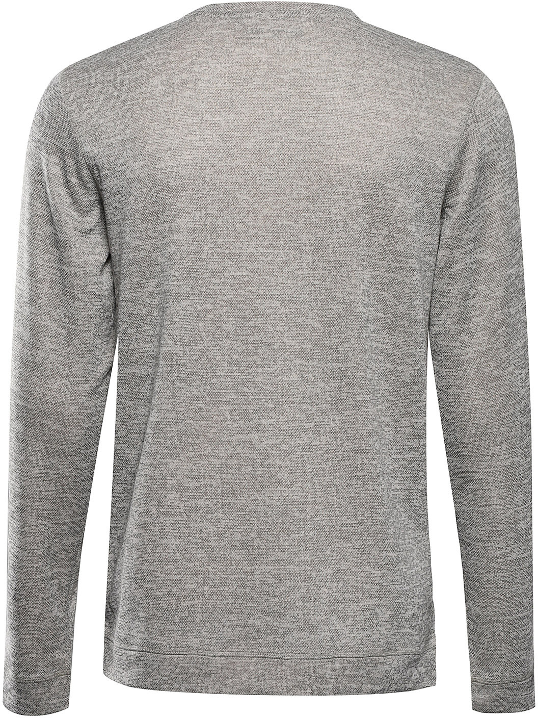 Pánské triko s dlouhým rukávem je vyrobeno ze 100% polyesteru, který je lehký, příjemný na nošení a zároveň nenáročný na údržbu. Melírovaný materiál dodává triku moderní a sportovní vzhled, který snadno sladíte jak s džínami, tak i s volnočasovými kalhotami. Polopřiléhavý střih zvýrazňuje postavu, ale zároveň poskytuje dostatek pohodlí při pohybu.