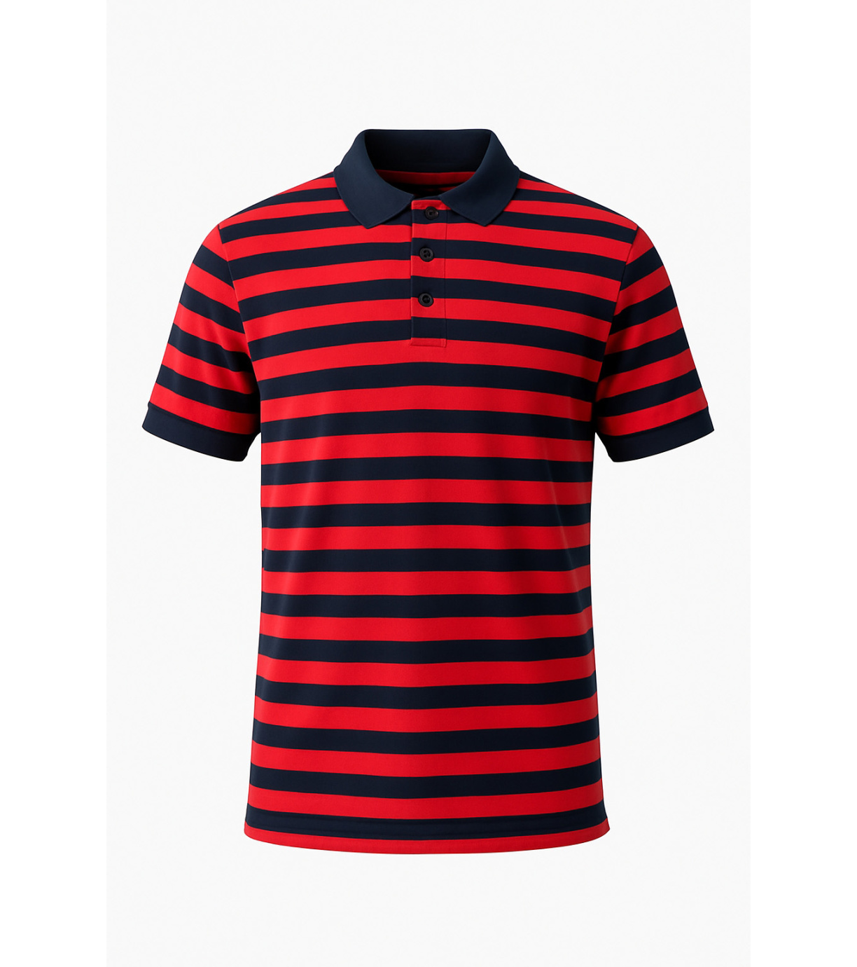 Pánské polo triko v moderním pruhovaném designu v kombinaci červené a tmavě modré barvy. Vyrobeno z kvalitního, příjemného materiálu, který zajišťuje pohodlí po celý den. Klasický límeček se zapínáním na tři knoflíky a krátké rukávy dodávají elegantní sportovní vzhled. Ideální pro volný čas, práci i letní dny.