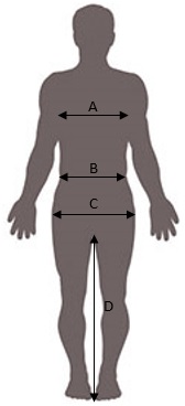 | A | Obvod hrudníku | 90 - 93 | 94 - 97 | 98 - 101 | 102 - 105 | 106 - 109 | 110 - 113 | 114 - 117 |