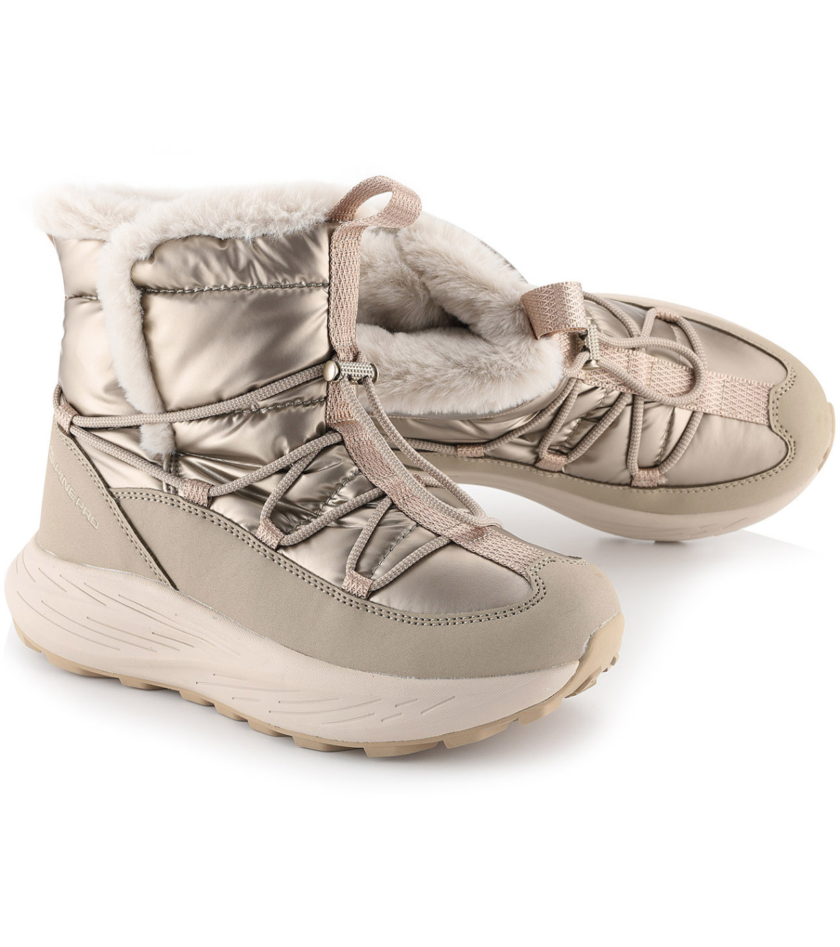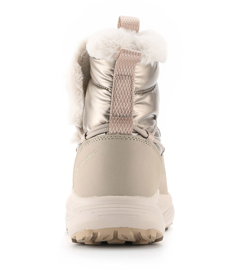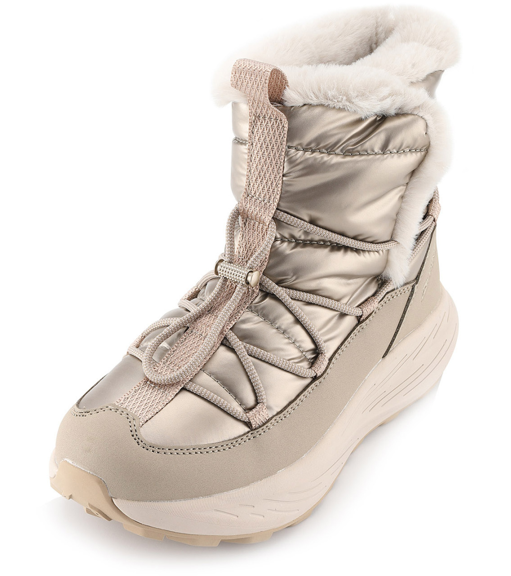 Dámská zimní obuv je vyrobena z kombinace syntetiky a textilie, která zajišťuje odolnost a pohodlí při každodenním nošení. Uvnitř se nachází zateplená textilní podšívka, díky níž zůstávají nohy v teple i během chladných zimních dnů. Pryžová podešev dodává botě výbornou stabilitu, odolnost a jistý krok na různých typech povrchů.