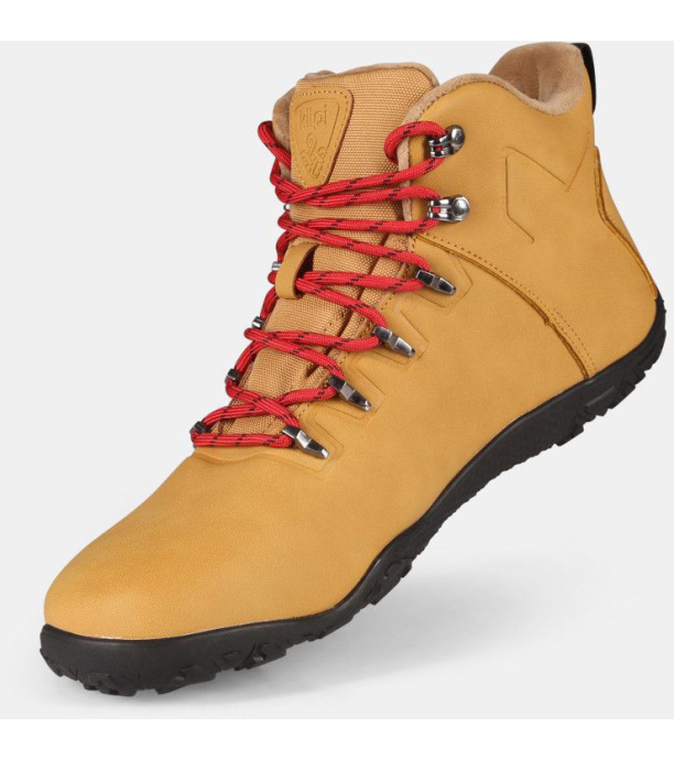 Díky volnějšímu střihu, respektujícímu anatomii vašich nohou, budou mít vaše prsty dostatek prostoru. Vyrobeny z technické kůže, která je snadno udržovatelná, připomínající pravou kůži. Boty jsou odolné proti vlhkosti, díky vnitřní membráně, takže s nimi můžete vyrazit i do deště a vlhka. Vnitřní stélka z hebkého mikrofleecu zajistí, že budete mít nohy v teple i v chladnějším počasí. Nylonové tkaničky pevně fixují botu na vaší noze a zajistí stabilní kroky. Navíc, získáte bonusový pár tkaniček v kontrastní barvě pro stylový vzhled. Dopřejte svým nohám pohodlí a ochranu díky měkké tlumící vložce s mikroperforací, která tlumí dopady, izoluje před chladem a zajišťuje lepší odvětrávání. S 3mm tenkou pryžovou podešví s multiterénním vzorkem, zdoláte lehké výšlapy s pocitem bosých nohou a přitom pogumované chrániče špiček prstů, vás ochrání před nepříjemnými nákopy.