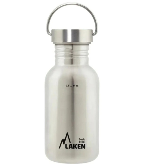 Moderní jednoplášťová láhev LAKEN z nerezové oceli 18/8, která zajišťuje naprostou bezpečnost nápoje.