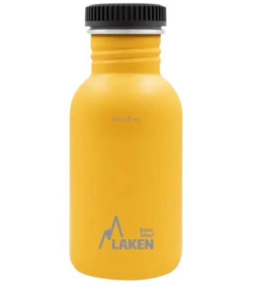 Moderní jednoplášťová láhev LAKEN z nerezové oceli 18/8, která zajišťuje naprostou bezpečnost nápoje.