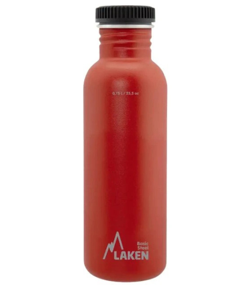 Moderní jednoplášťová láhev LAKEN z nerezové oceli 18/8, která zajišťuje naprostou bezpečnost nápoje.