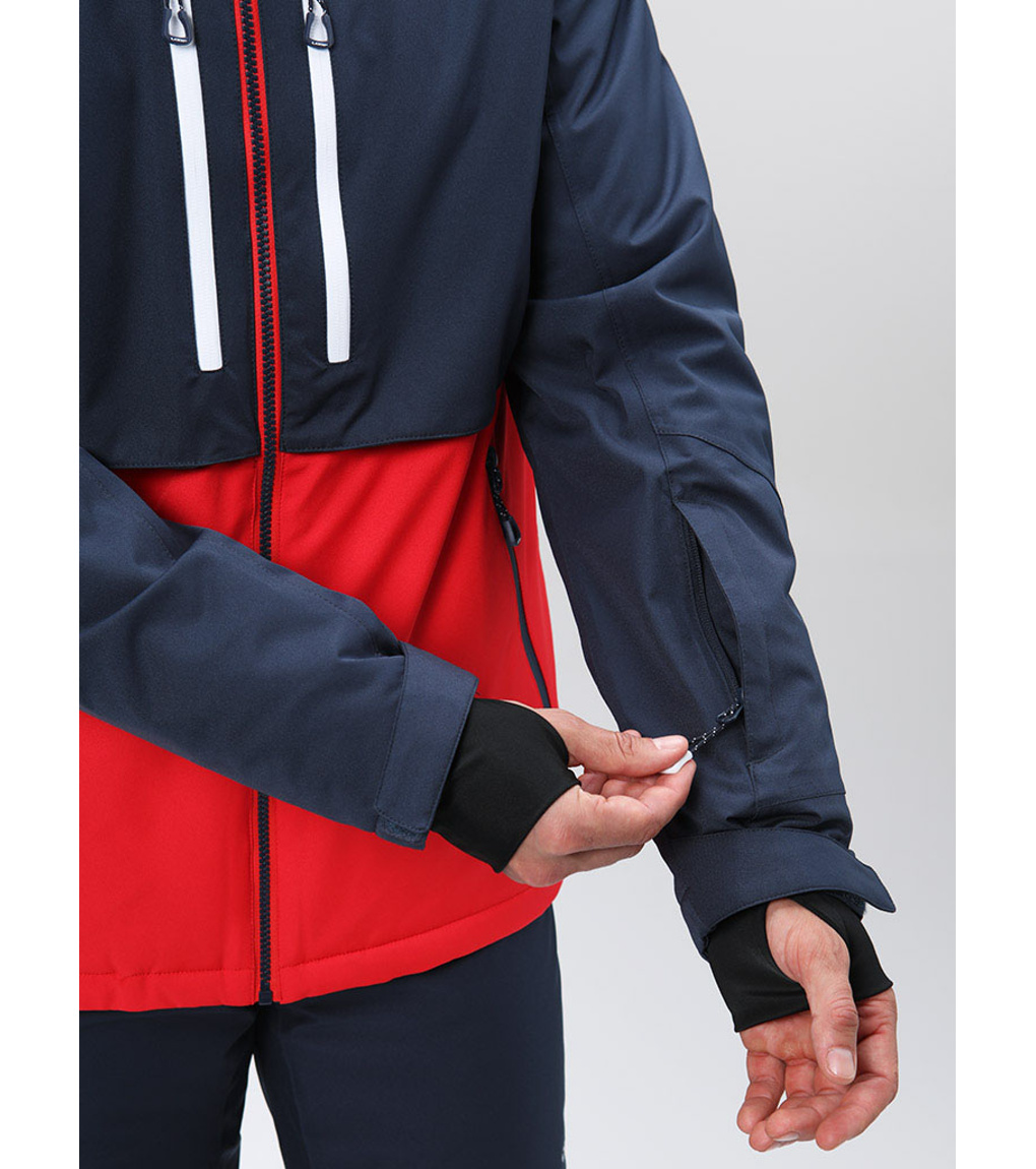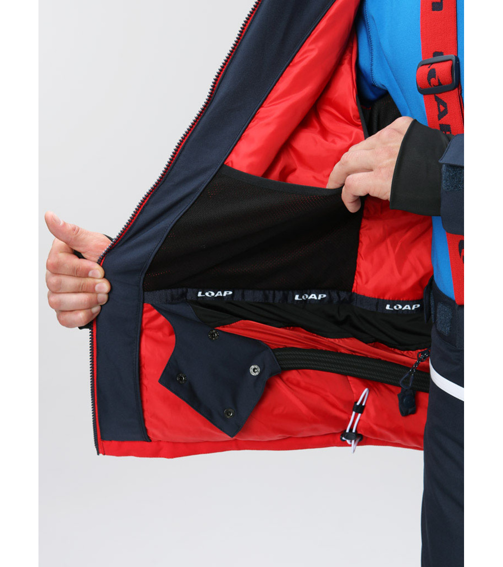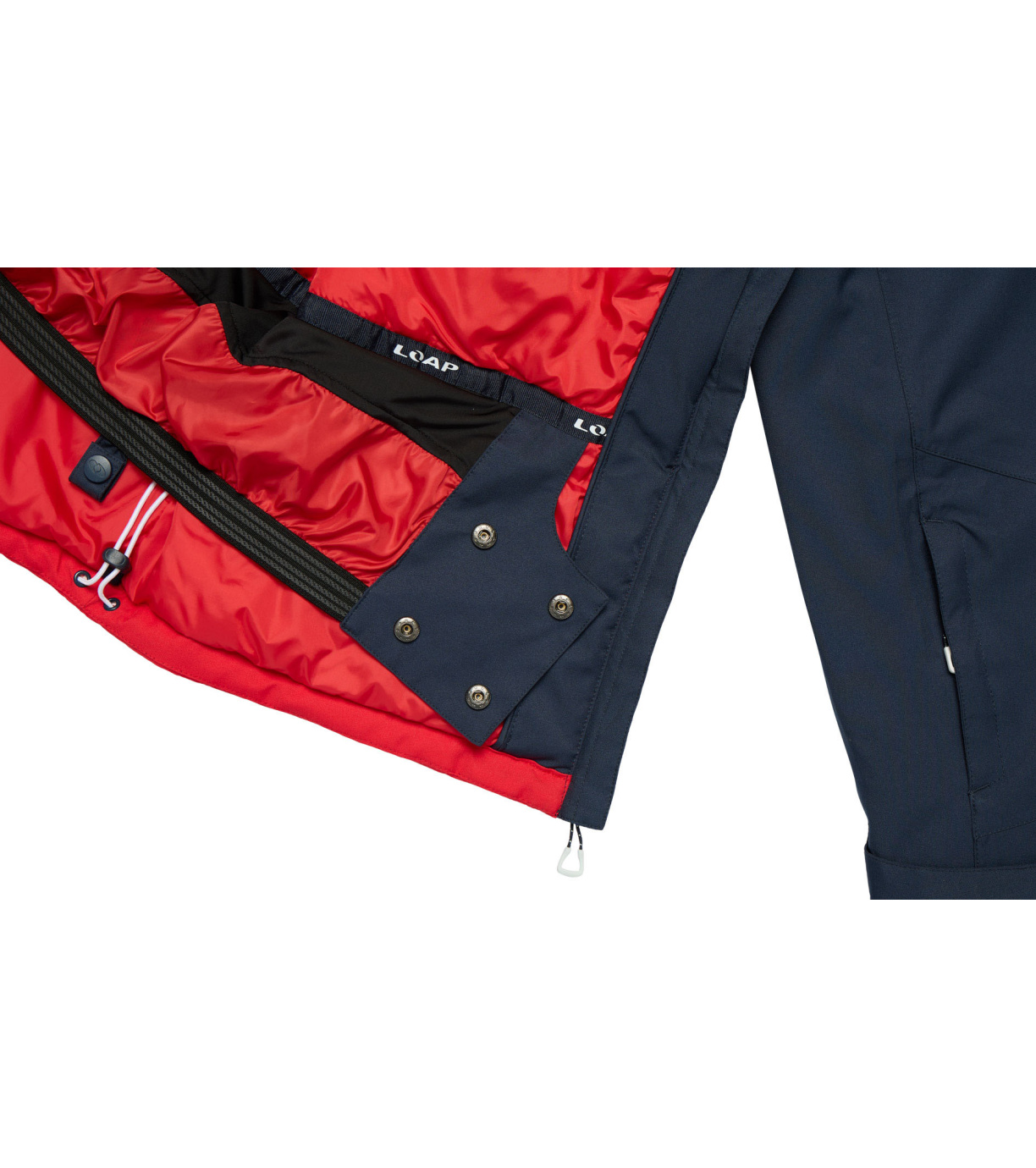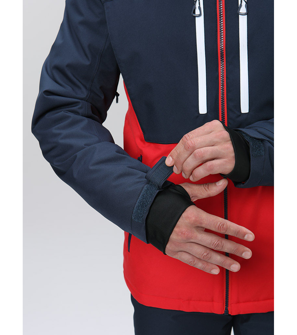 Všitá ochraná sněhová manžeta, která zabraňuje pronikání sněhu pod oděv. Ve spodní části je našita elastická protismyková guma.