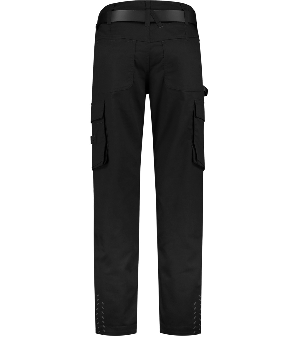 Dámské pracovní kalhoty z lehkého materiálu. Zvýšený pas v zadní části, elastický pasový límec  pro komfortnější nošení. Samozřejmostí jsou reflexní prvky a multifunkční kapsy a  "D" poutko. Zvětšení švové záložky pro možnost individuálního  prodloužení o max. 6 cm. Pásek není součástí balení.