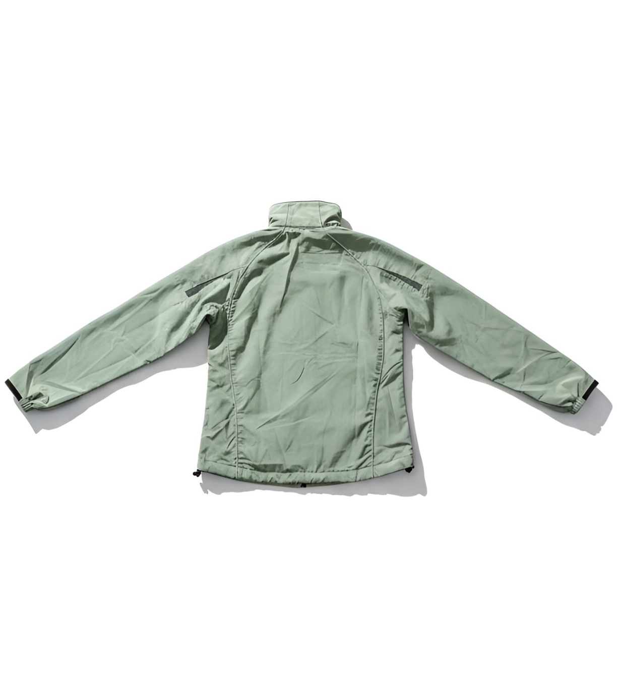 Lehká funkční bunda v jemném zelenošedém odstínu je ideální volbou pro každodenní nošení i outdoorové aktivity. Minimalistický design doplňuje praktický stojáček a celopropínací zip, který usnadňuje oblékání a regulaci teploty.