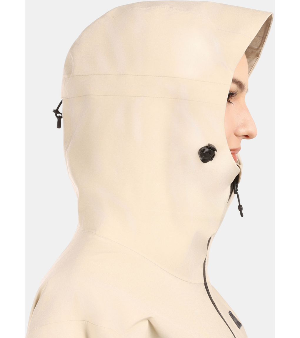 Kabát je vyroben z 4-way stretch materiálu SIBERIUM 10 000 SRC SS s vodním sloupcem 10 000 mm a prodyšností 5 000 g/m²/24 h, což zajišťuje spolehlivou ochranu proti dešti a větru, aniž by omezoval prodyšnost. Vysoký límec chrání krk a kapuce s vyztuženým kšiltem a nastavením na šňůrku poskytuje ochranu při nepřízni počasí.