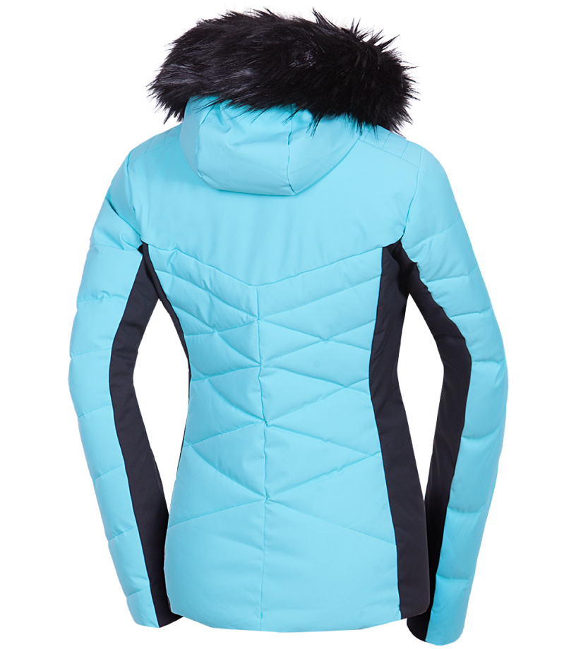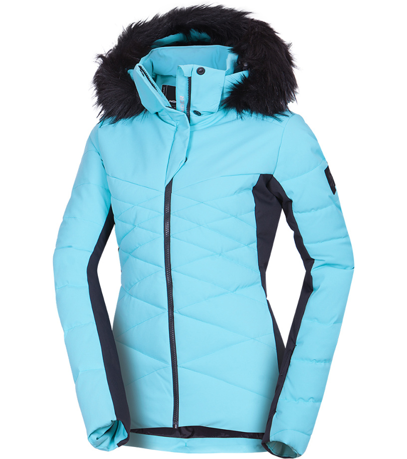 Dámská lyžařská bunda dokonale připravená na zimní počasí, sněžení i vítr. Přináší trendový design spolu s pokročilými technickými funkcemi a pohodlím. Je vyrobena z vysoce strečového 2-vrstvového materiálu s membránou a hodnotami 10 000 mm H₂O / 10 000 g/m²/24 h, díky čemuž dobře odolává větru i vodě při zachování výborné prodyšnosti. Materiál byl navíc ošetřen ekologickou vodoodpudivou WR úpravou (bez PFC). Tepelný komfort je navíc zajištěn díky léze proti profouknutí pod zipem a sněhovému pásu, který chrání před vniknutím sněhu dovnitř bundy. Komfort při nošení zvyšují předtvarované rukávy a možnost nastavení obvodu rukávů na suchý zip s vnitřní vsadkou z lycry.