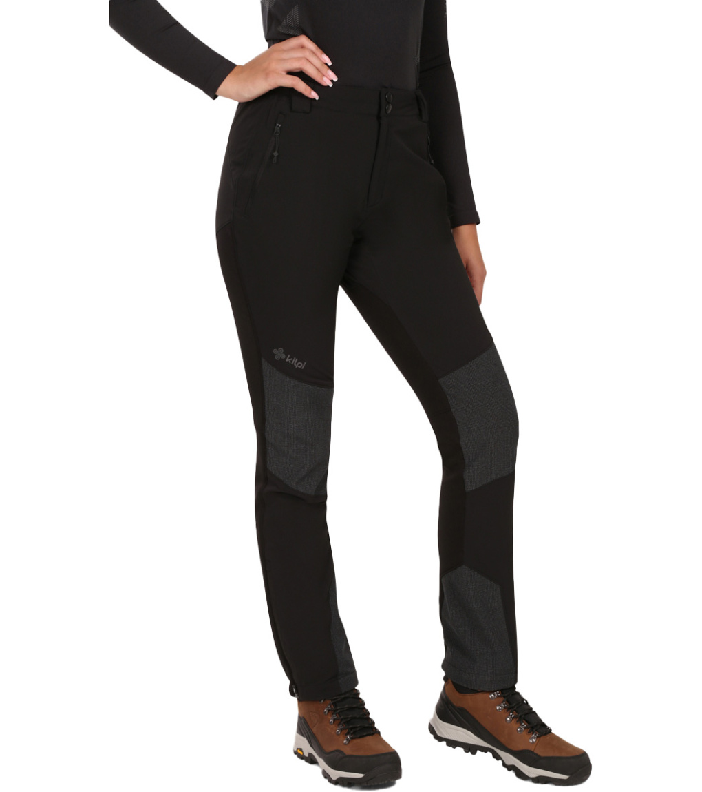 Dámské softshellové kalhoty Kilpi NUUK-W patří mezi nejoblíbenější outdoorové kousky díky svému pohodlí a skvělé funkčnosti. Jsou ušity z kombinace tří různých materiálů, které společně zajišťují optimální ochranu i komfort při pohybu. Přední část stehen tvoří pružný tkaný softshell, který účinně odolává větru. Zadní díl je z elastického fleecu, jenž dobře odvádí vlhkost a zároveň příjemně zahřeje. Oblasti kolen a dolní části nohavic jsou zesílené materiálem odolným proti oděru, takže kalhoty vydrží i náročnější podmínky.