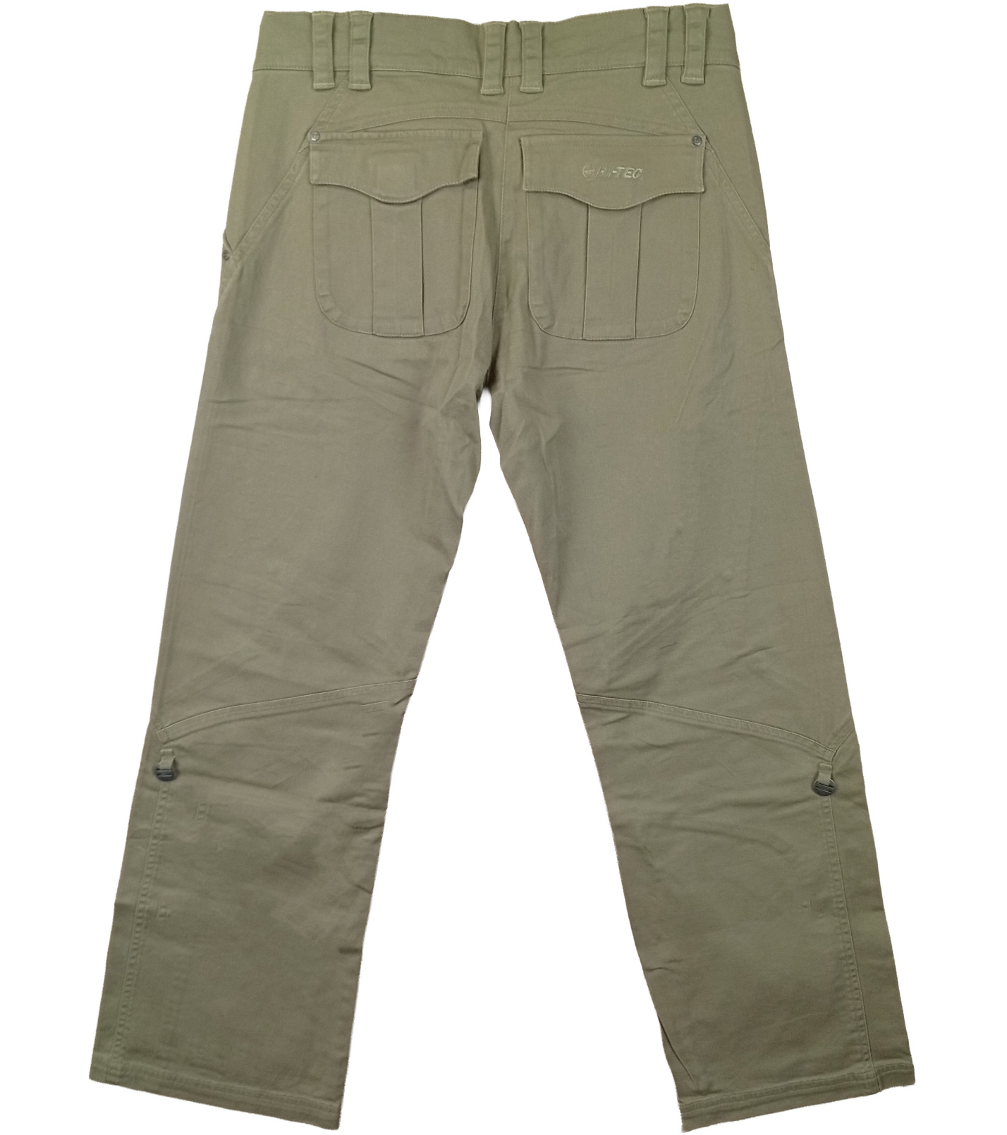 Zelené outdoorové kalhoty v praktickém, funkčním střihu určeném pro aktivní pohyb. Pevný a odolný materiál zajišťuje komfort i při náročnějším používání, zatímco ergonomicky tvarované švy v oblasti kolen podporují volnost pohybu. Kalhoty mají klasické zapínání, poutka na pásek a zesílené části pro vyšší odolnost. Díky jednoduchému designu a funkčnímu provedení jsou ideální pro turistiku, cestování i každodenní nošení v přírodě.