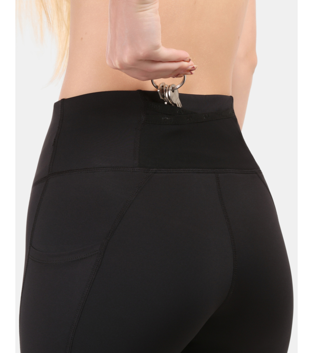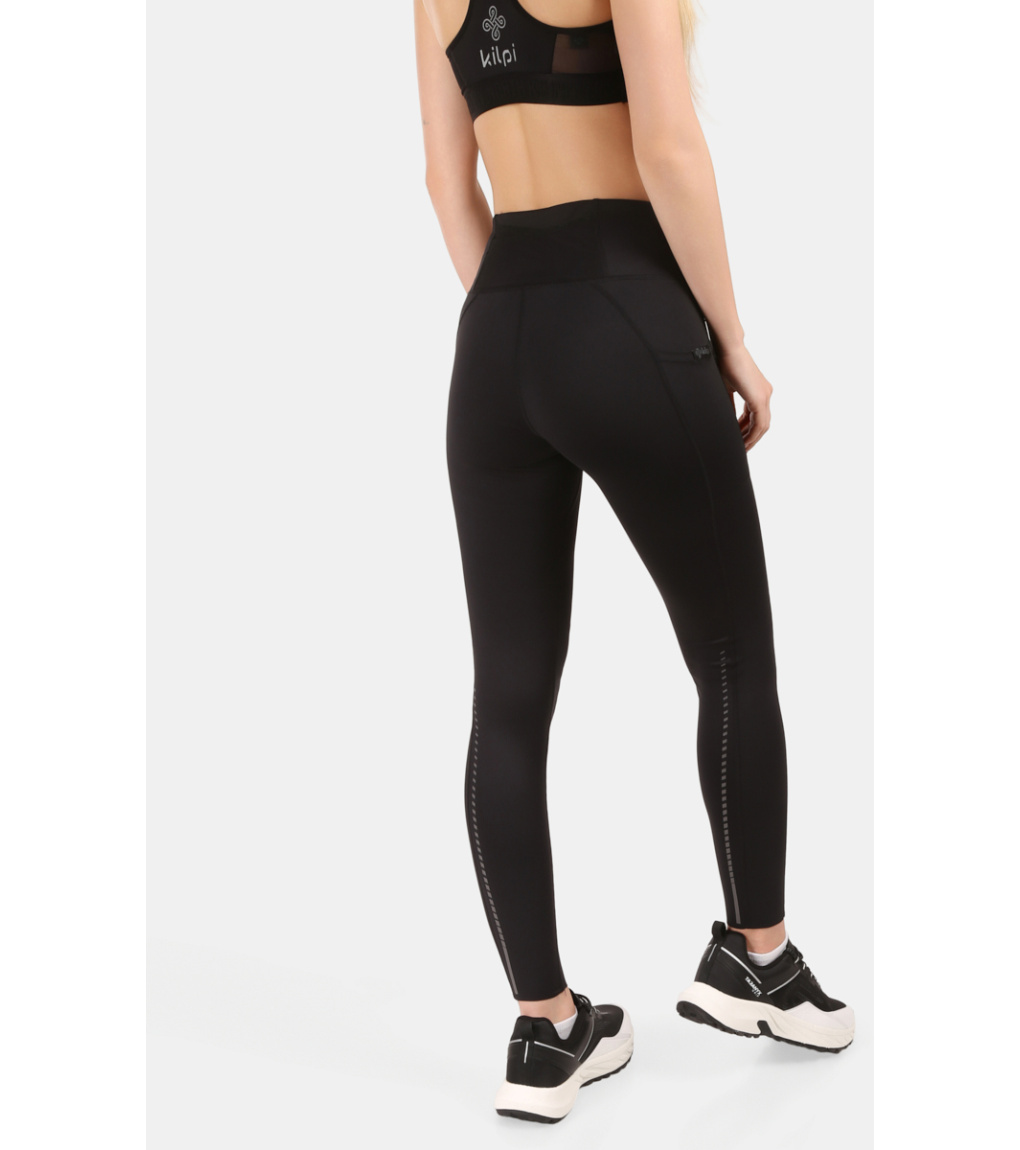 Čtyřsměrný streč z nylonu a elastanu dokonale kopíruje ženské tvary a zajišťuje volnost pohybu, zatímco ploché švy nedráždí pokožku. Vysoký pas s tkaničkou a zadní síťovaná kapsa na klíče přidávají praktické využití. Reflexní prvky zvyšují bezpečnost při běhání nebo turistice za snížené viditelnosti.