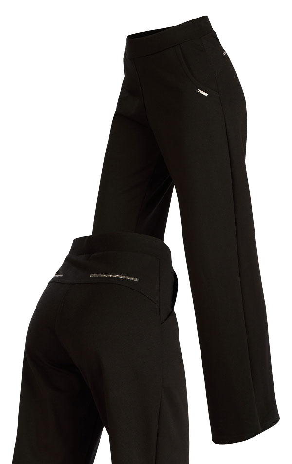 Elegantní styl s vyšším sedem a elastickým pasem. Široké nohavice s bočními kapsami. Na sedle zadního dílu ozdobná aplikace z kamínků. Silnější elastický úplet perfektně drží tvar a je příjemný na nošení. Velmi praktický kombinovatelný kousek.