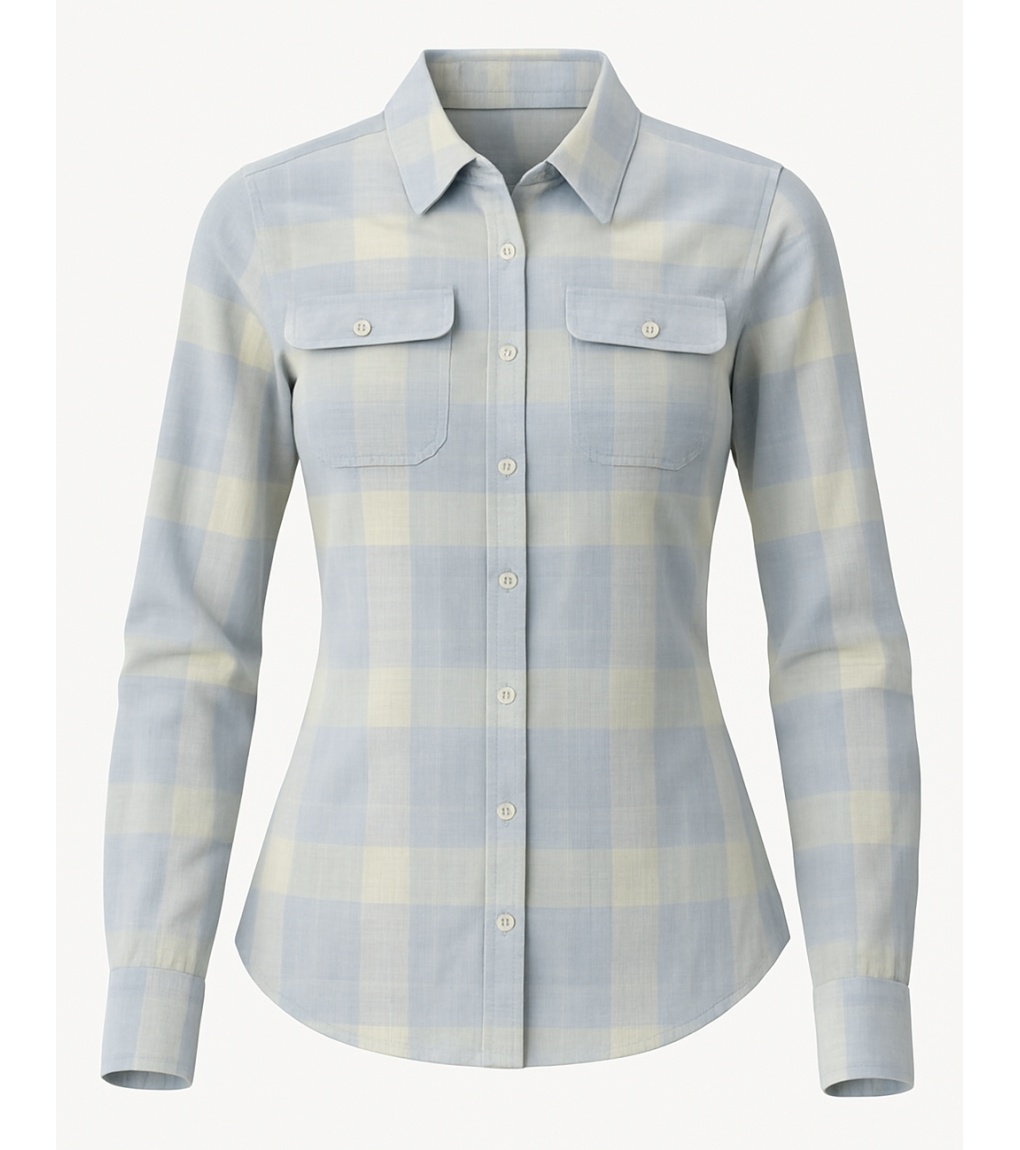 Dámská košile v jemném kostkovaném vzoru kombinuje elegantní vzhled s pohodlným každodenním nošením. Lehký, příjemný materiál se skvěle hodí jak do práce, tak na volný čas. Díky projmutému střihu krásně zvýrazní siluetu, zatímco dvě náprsní kapsy s klopou dodávají košili ležérně–stylový nádech. Ideální k džínům, kalhotám i sukni pro nadčasový, čistý look.