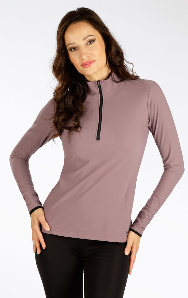 Funkční mikina dámská s krátkým zipem. Dámská přiléhavá mikina se stojáčkem a zapínáním na krátký zip. Materiál s broskvovým omakem a jemným počesem na vnitřní straně s vysokou hřejivostí. Triko je velmi pružné, vhodné na sport, ale i na volnočasové aktivity.