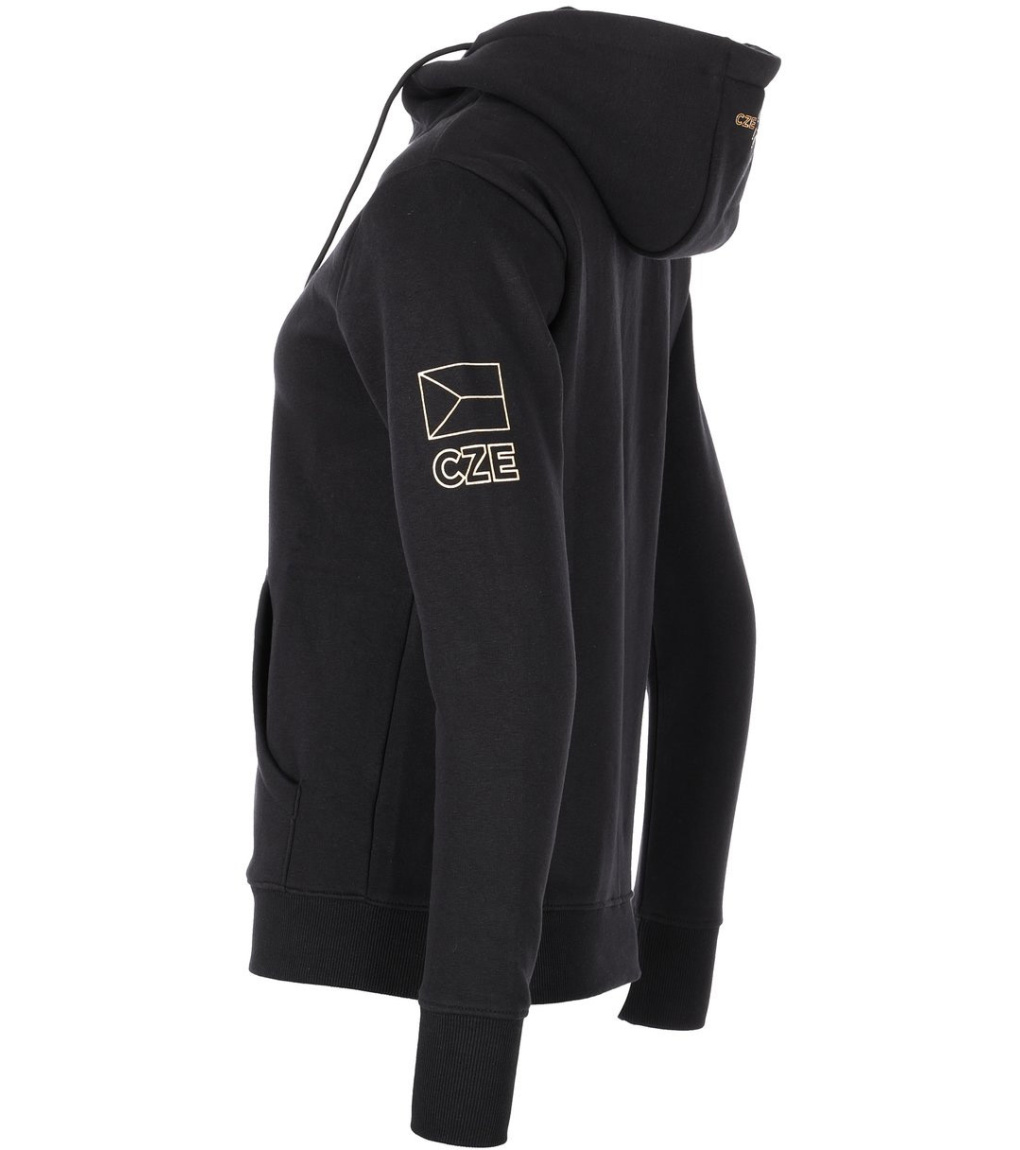 Dámská bavlněná mikina s kapucí COURIRA patří do limitované merchandisingové olympijské kolekce, která byla připravena speciálně pro letní olympijské hry 2024 v Paříži. Dámskou mikinu s klokánkovou kapsou, dlouhým zipem a lemovanými rukávy i spodní částí využijete pro všechny typy outdoorových i indoorových aktivit, při sportu a běžném denním nošení. Dámská sportovní mikina je vyrobena z měkkého bavlněného materiálu, který je při nošení velmi poddajný, pružný a pohodlný. Praktická černá barva, olympijský symbol a česká vlajka na hrudi, to vše vytváří elegantní a unikátní design výrobku. Tento jedinečný kousek z velmi limitované olympijské kolekce nekoupíte každý den, a proto s nákupem neváhejte!
