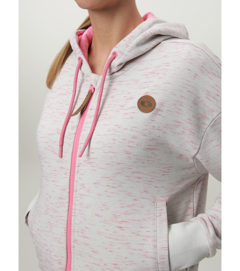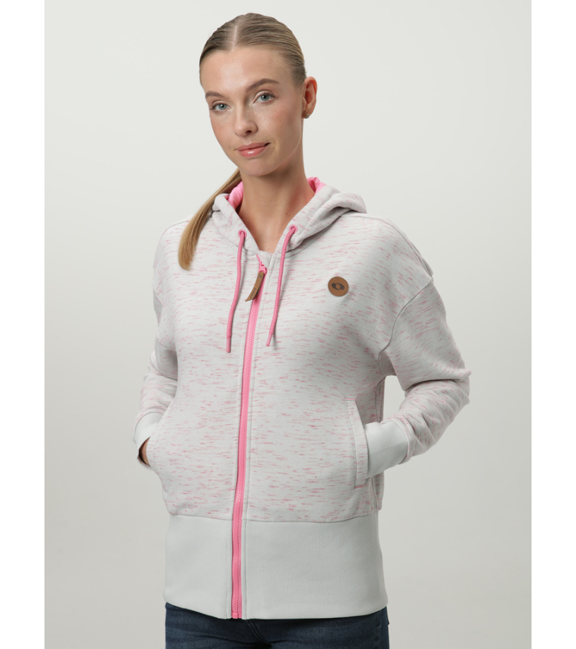 Dámská mikina LOAP ECNELA je navržena pro maximální komfort během celého dne. Komfortní střih a volnější provedení umožňují volný pohyb a příjemné nošení. Pevná kapuce podtrhuje sportovní vzhled a poskytuje ochranu před nepříznivým počasím. Dlouhý kostěný zip usnadňuje oblékání a umožňuje snadnou regulaci tepla. Rukávy i spodní okraj jsou zakončeny náplety, které pomáhají udržet tvar a zajišťují, že mikina dobře sedí. Dvě kapsy jsou praktickým řešením pro uložení drobností nebo zahřátí rukou. Jednoduchý design umožňuje snadné kombinování s dalším oblečením.