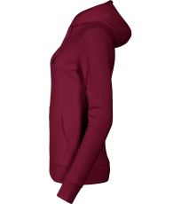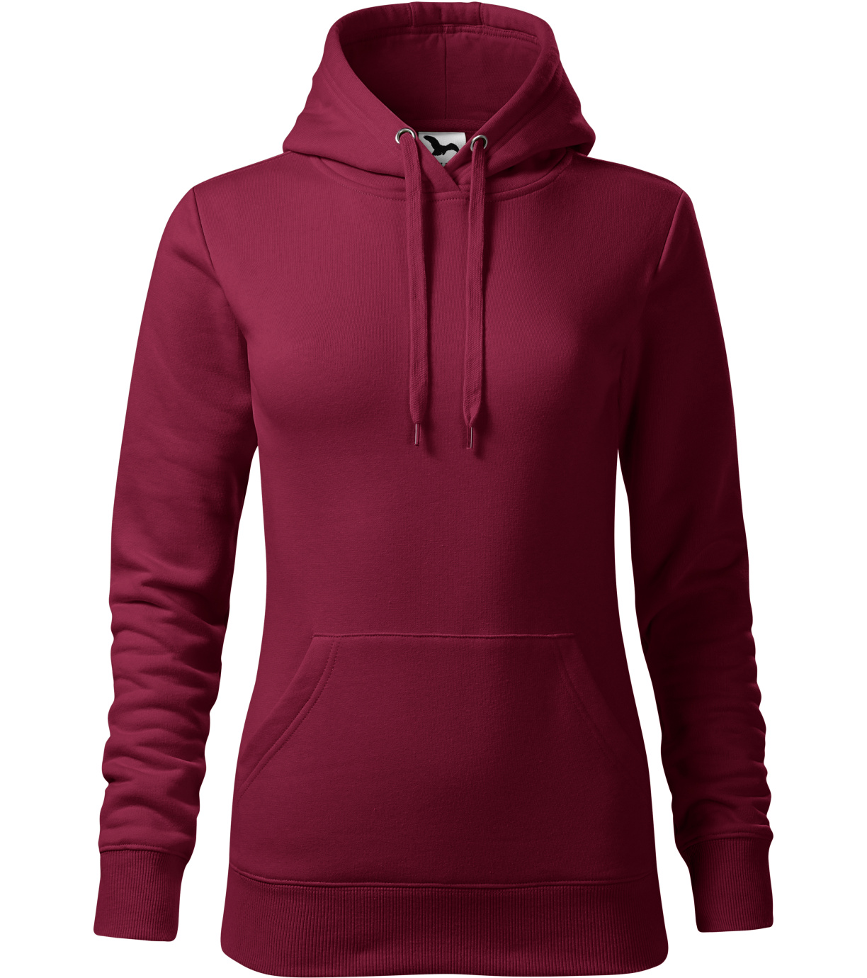 Dámská mikina s kapucí lehce vypasovaného střihu s bočními svy, nakládanou kapsou ve stylu klokanky na předním dílu, kapucí s podšívkou a na stažení šňůrkou, spodní lem a manžety rukávů z žebrového úpletu 2:2 s 5 % elastanu, vnitřní část průkrčníku začištěna tkanou páskou v barvě vrchového materiálu, vnitřní strana počesaná.