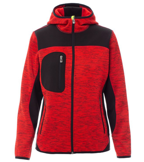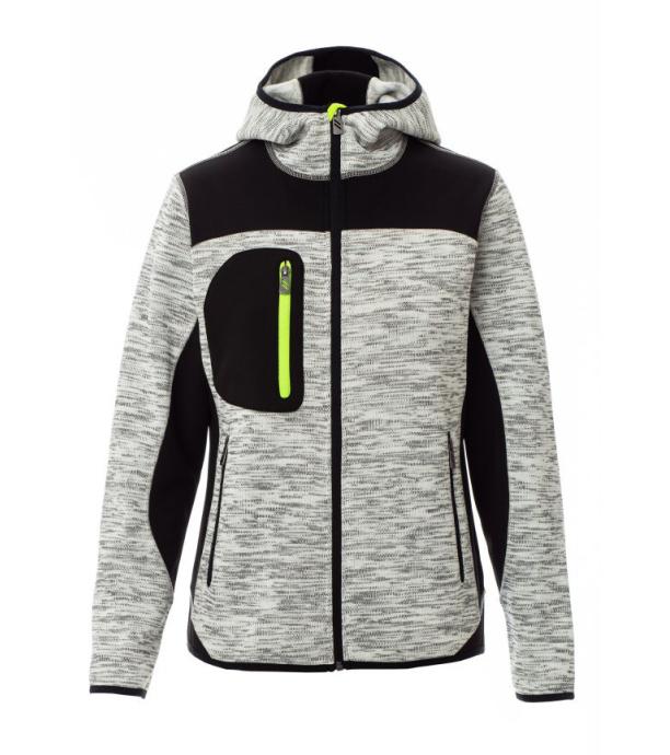 Technická mikina kombinovaná se softshellovými vsadkami v kontrastní černé barvě. Dvoubarevné provedení s utěsněným celopropínacím zipem SBS. Má tvarovanou kapuci s dvojitým prošitím, tenký elastický lem na rukávech a spodním okraji. Praktické uspořádání kapes zahrnuje dvě boční kapsy na zip a jednu kapsu na hrudi.