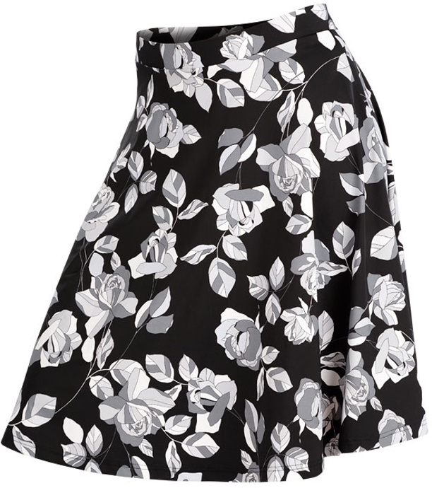 Dámská sukně. Elegantní rozšířená sukně po kolena s pružným pasem. Vhodná jako letní plavková sukně. Délka sukně cca 58 cm.